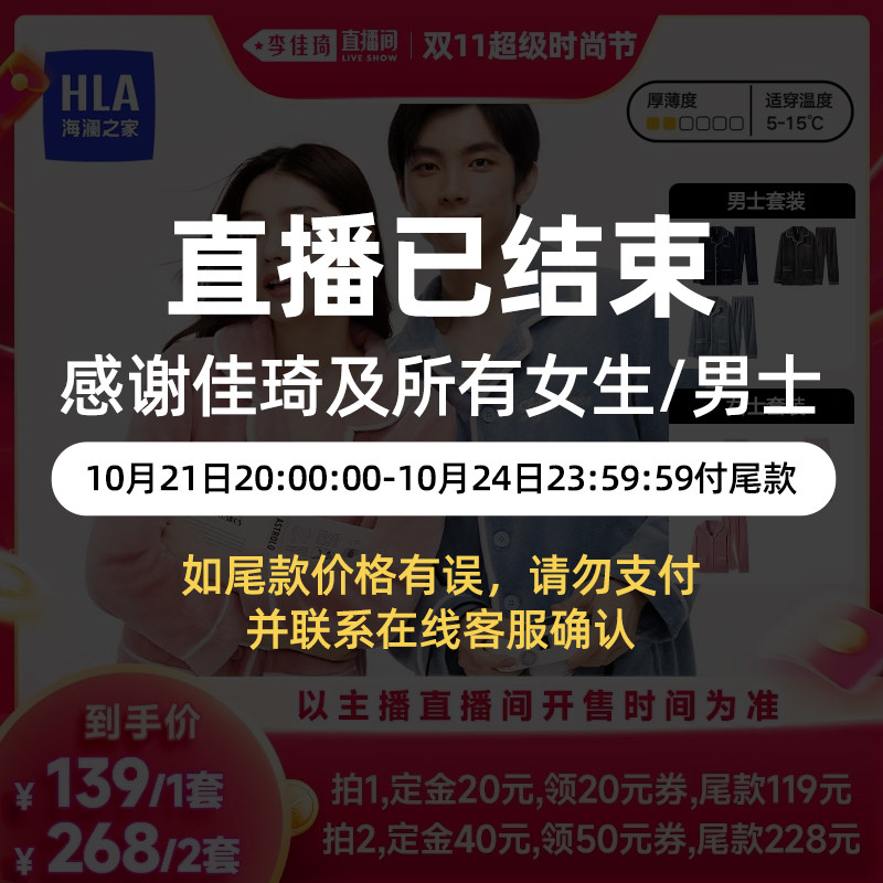 【李佳琦超级时尚节】海澜之家2024秋冬情侣珊瑚绒睡衣家居服套装