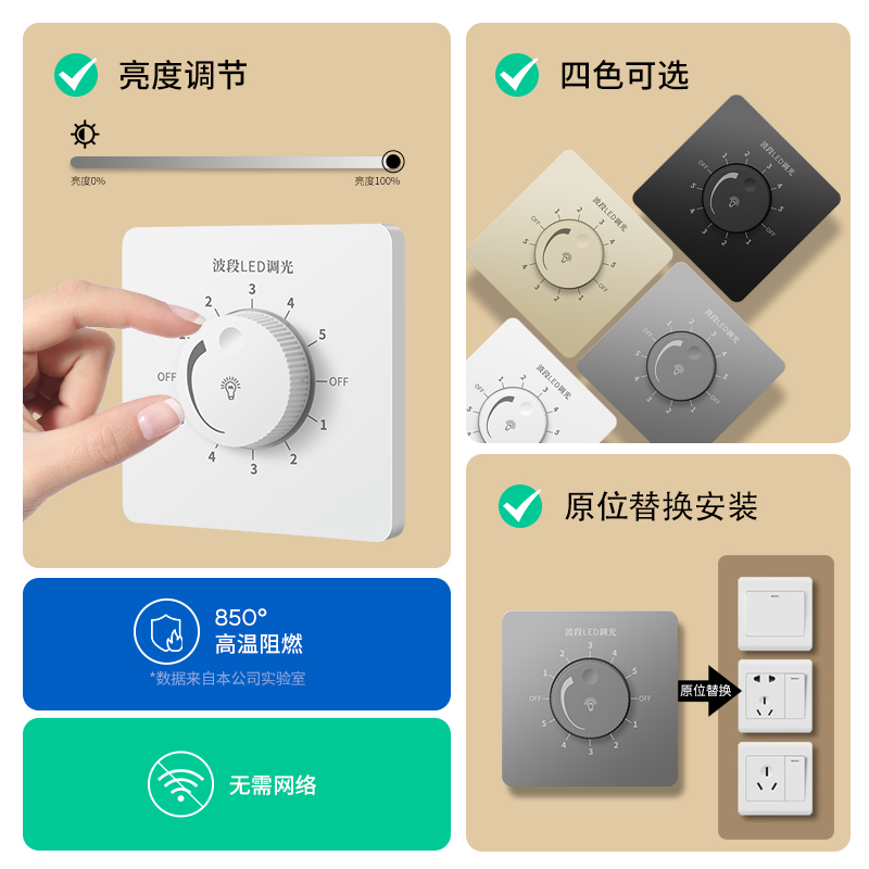 86型暗装开关插座面板电源无极调控可调节灯光亮度旋钮式调光开关