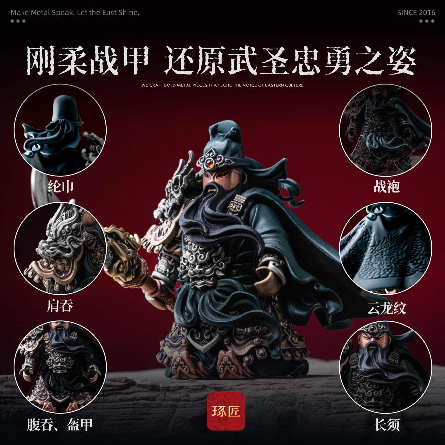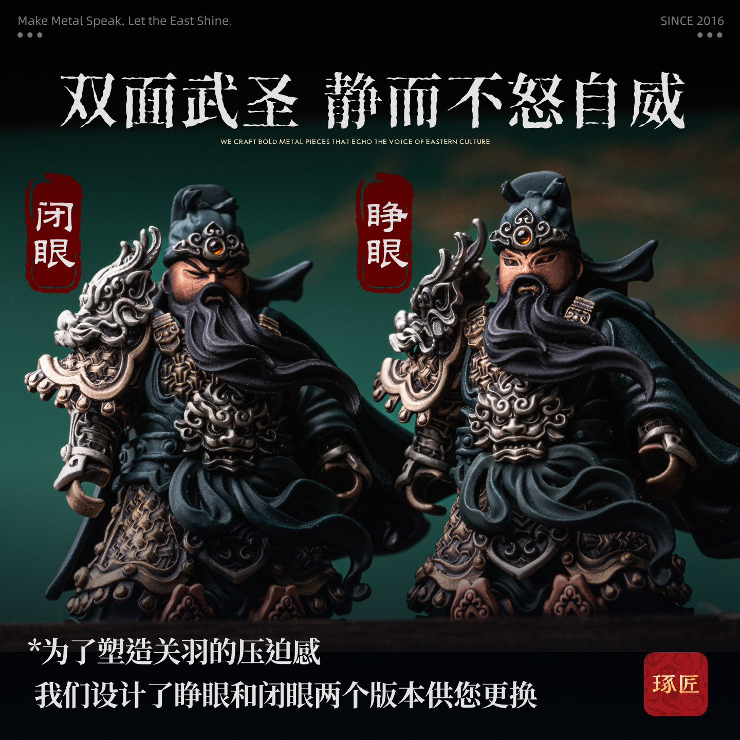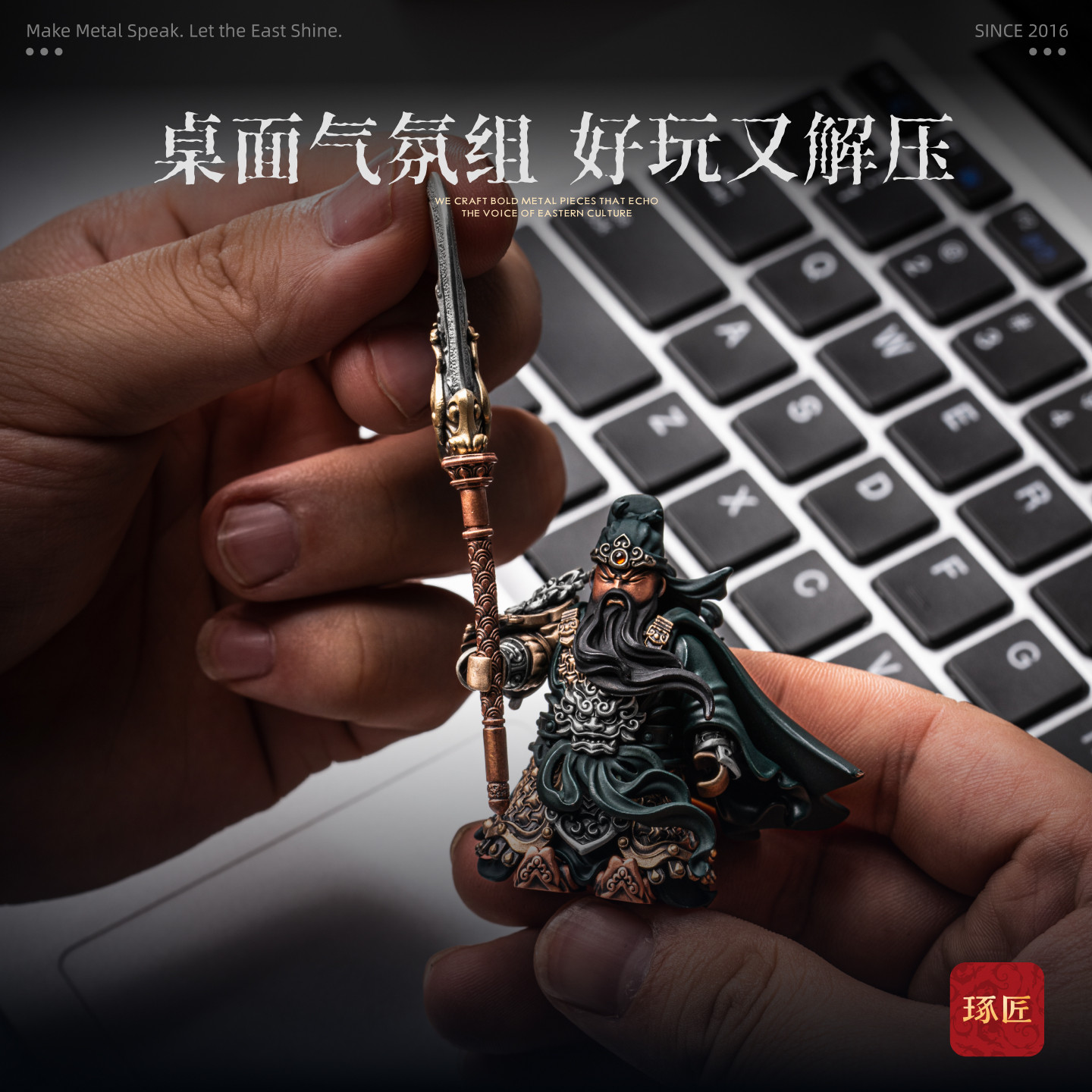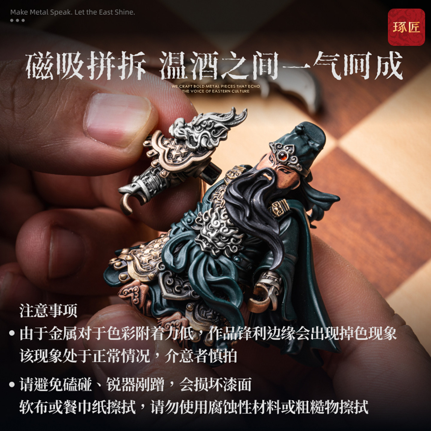 琢匠关羽小众桌面摆件三国人物手办国风大玩家金属人仔磁吸手把件