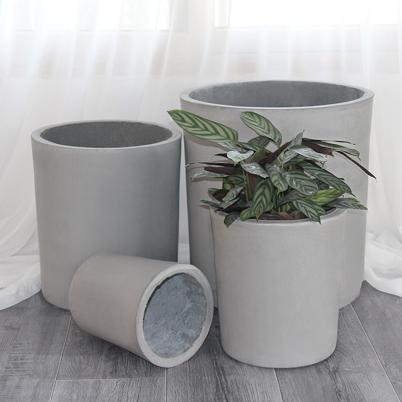 圆柱形简约仿水泥花盆加厚北欧室内植物现代创意落地花箱阳台大号