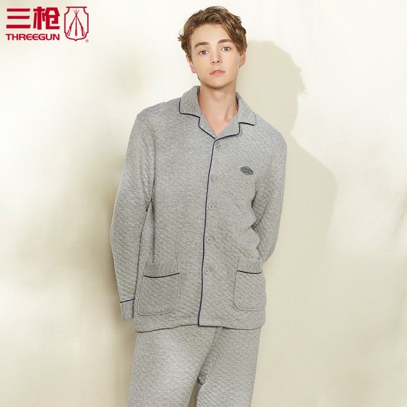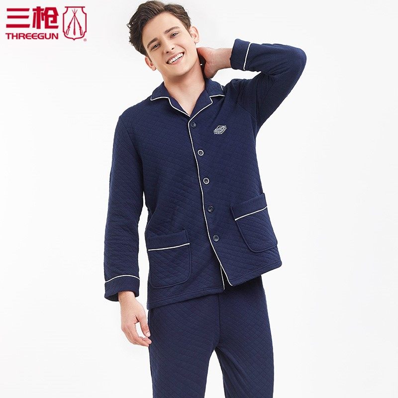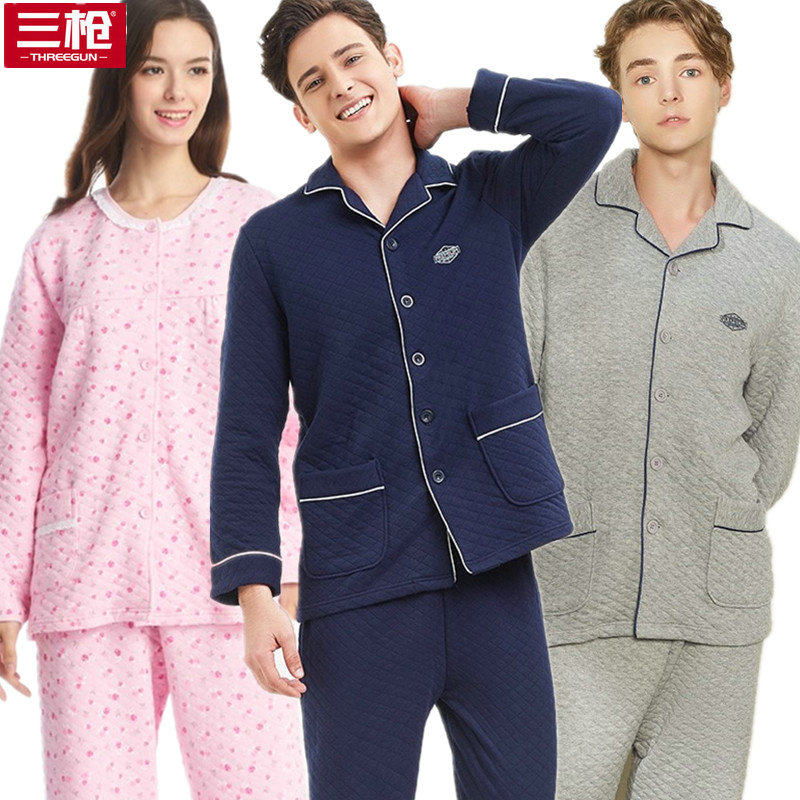 三枪家居服套装冬季暖棉加厚长袖长裤男士女士休闲起居服睡衣睡裤