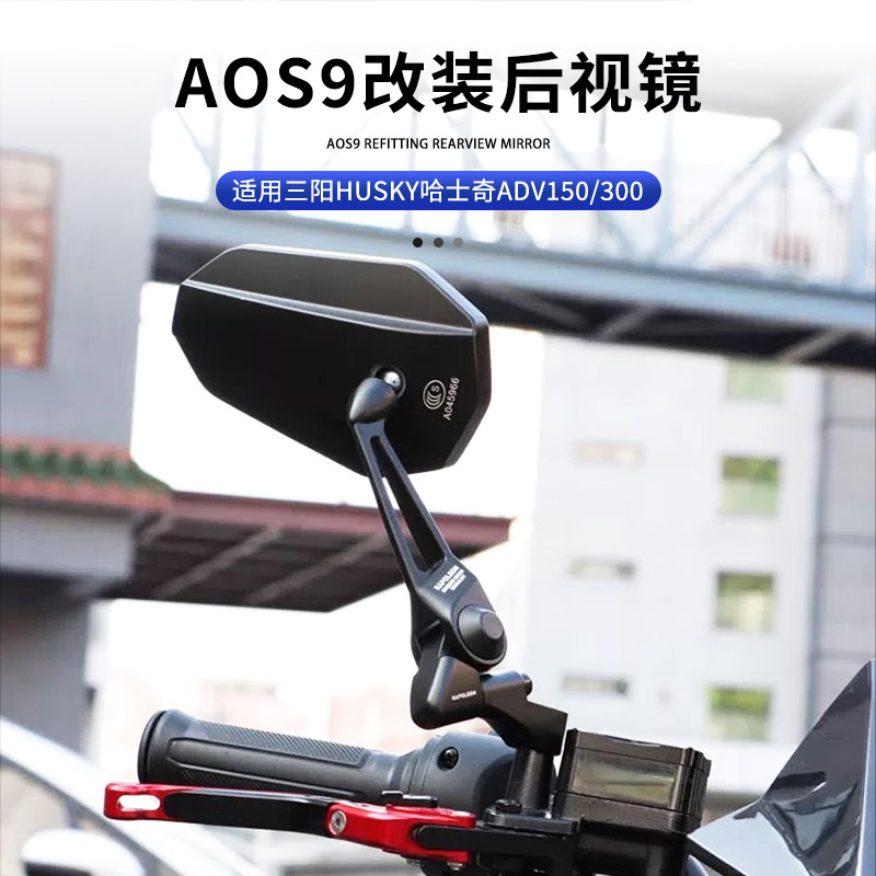 适用三阳HUSKY哈士奇ADV150/300 改装AOS9后视镜反光倒车镜配件