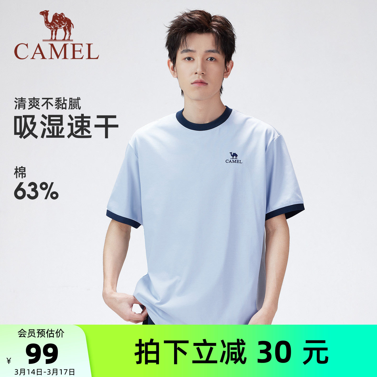 【绵绵T】骆驼男装短袖T恤速干透气休闲户外运动男款打底春夏宽松
