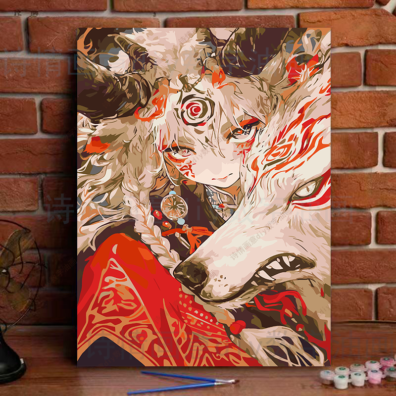 新款数字油画diy永宁祗古风人物动漫自己动手填色画画丙烯装饰画