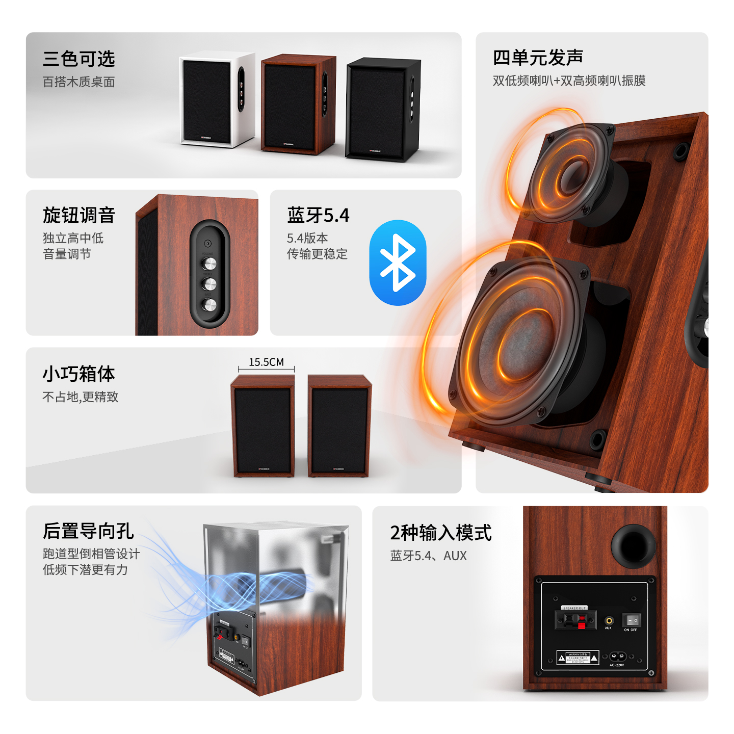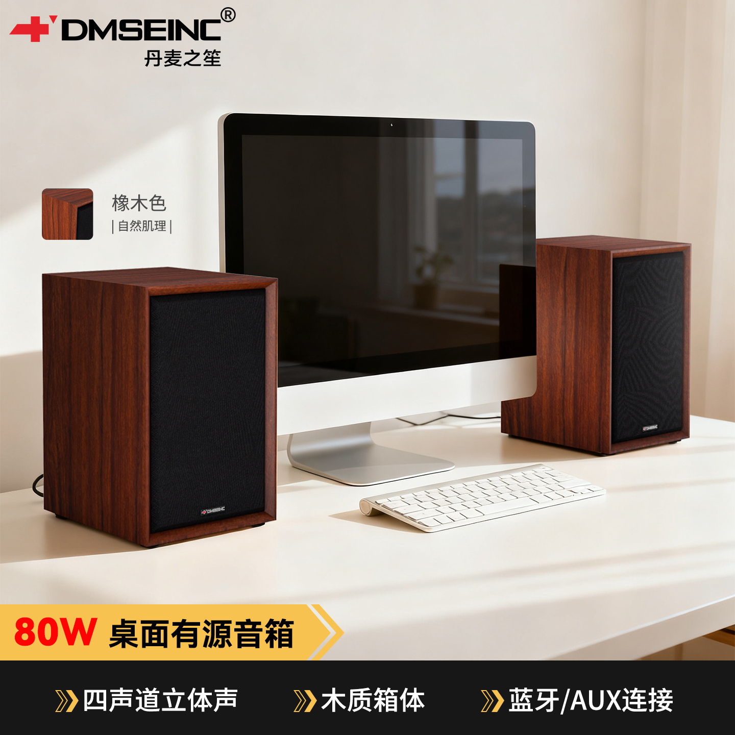 DMSEINC 电脑多媒体音箱 桌面蓝牙音响 家用木质2.0声道AUX音响