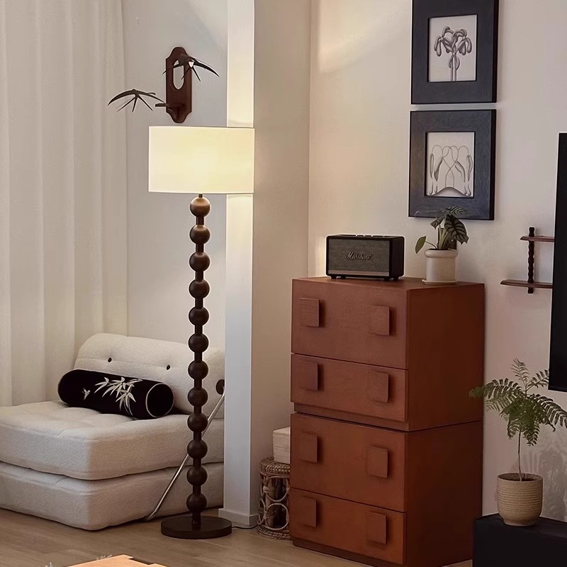 法式中古落地灯客厅卧室书房美式复古侘寂风氛围灯新中式立式灯具