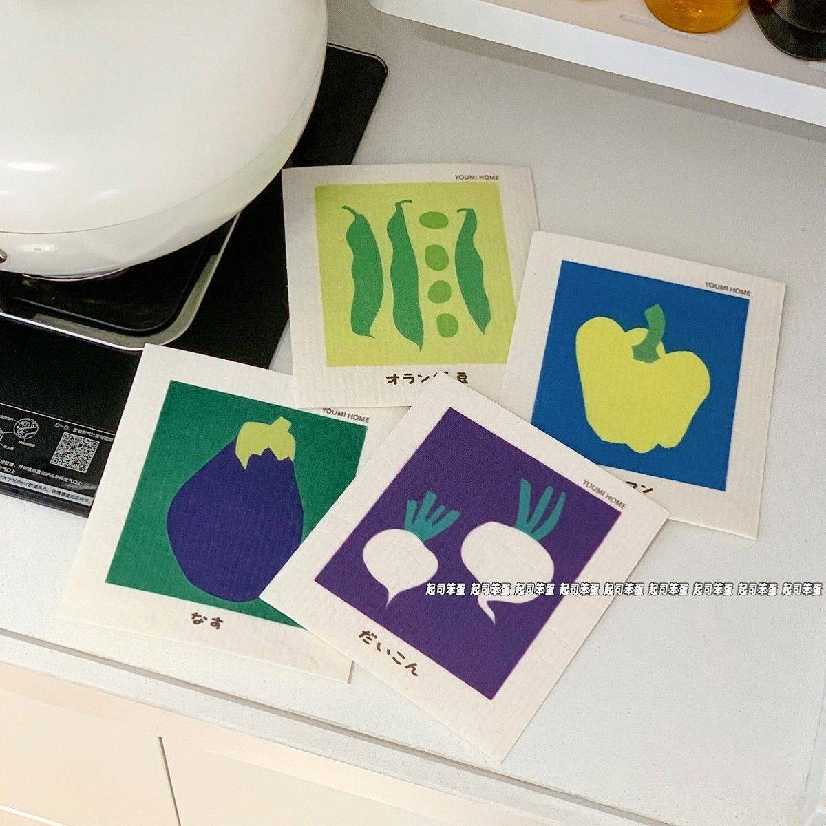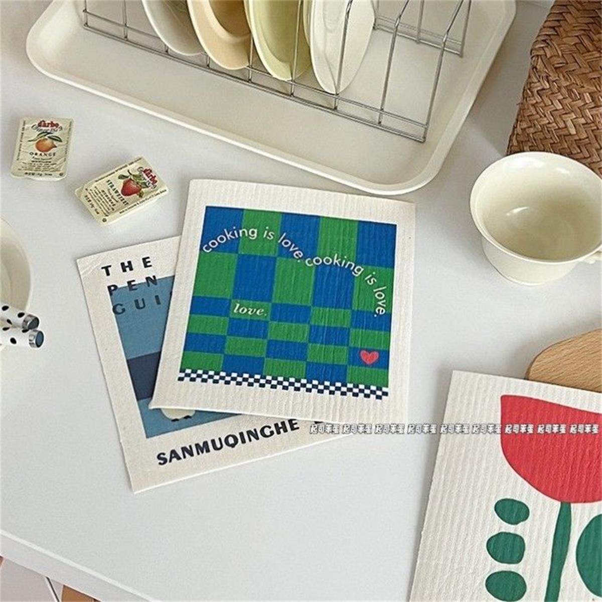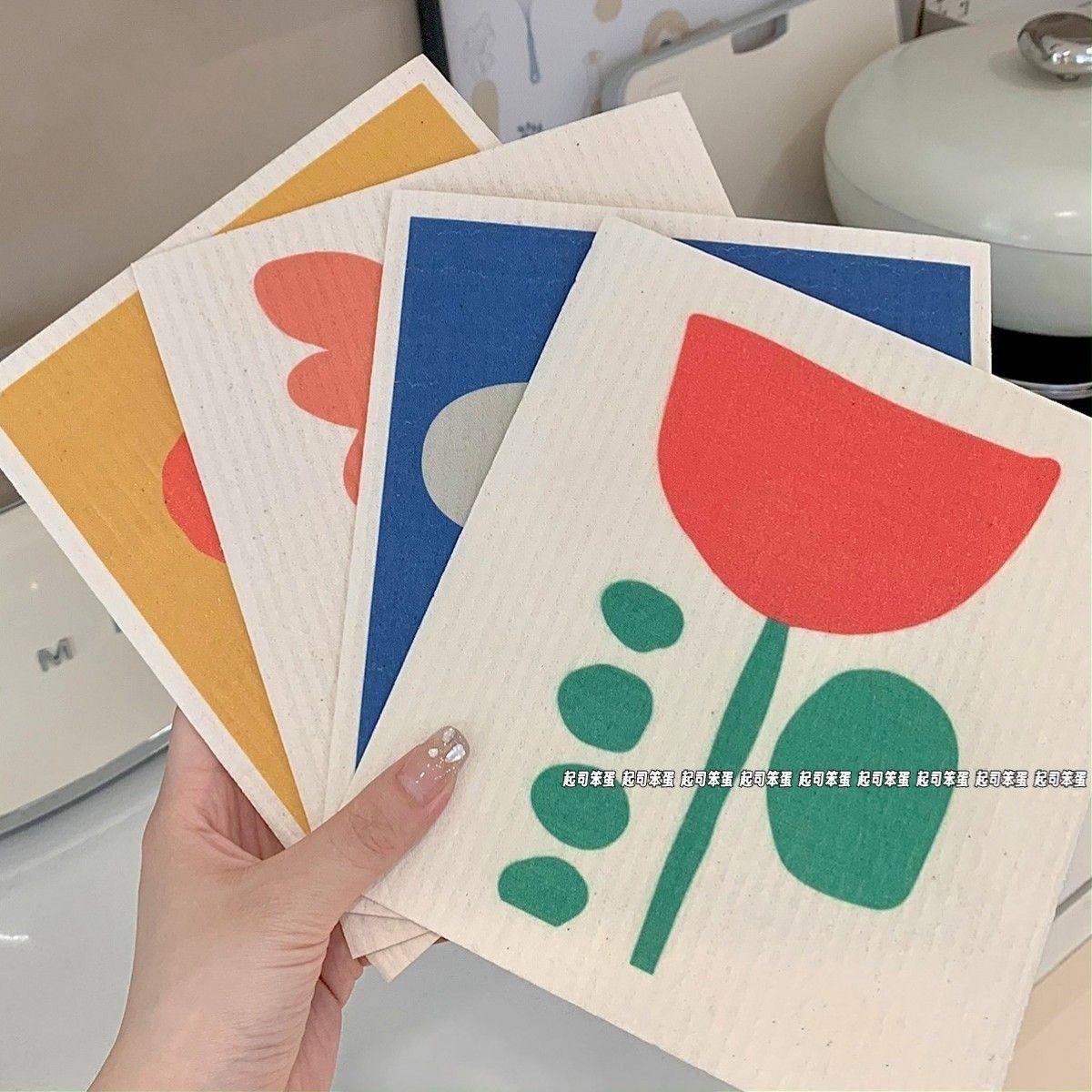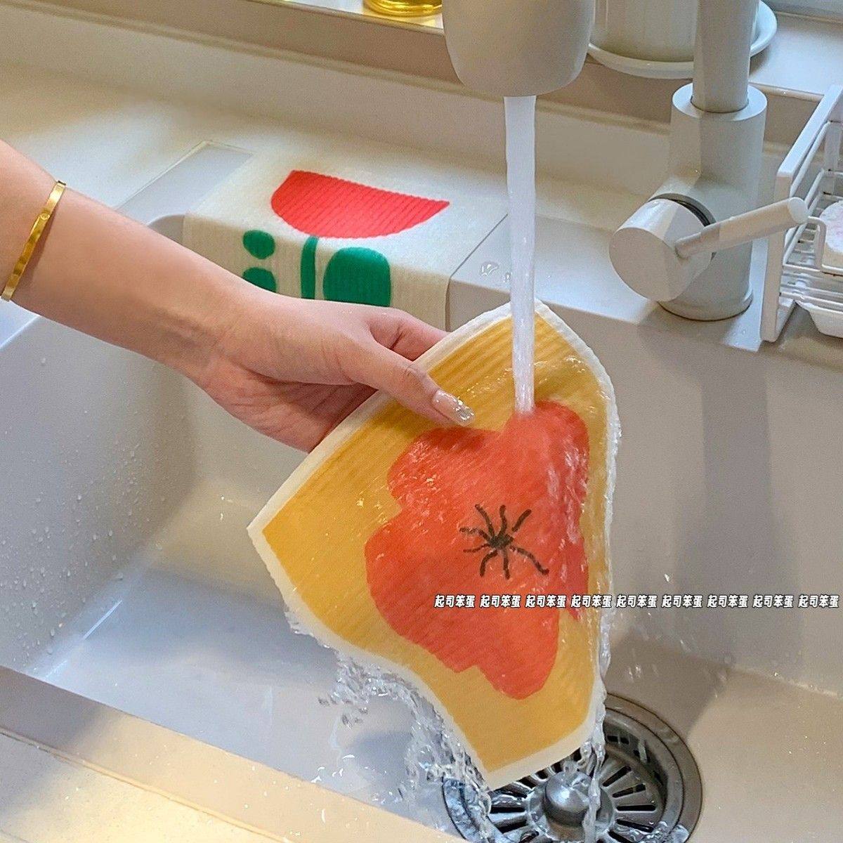 ins风简约厨房木浆棉抹布重复使用吸水加厚不掉毛洗碗巾清洁布