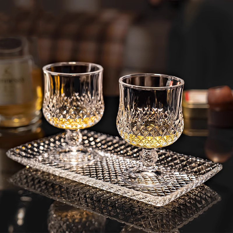 法国雕花威士忌酒杯无铅水晶家用轻奢高档白兰地高脚洋酒杯品鉴杯