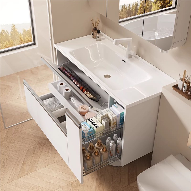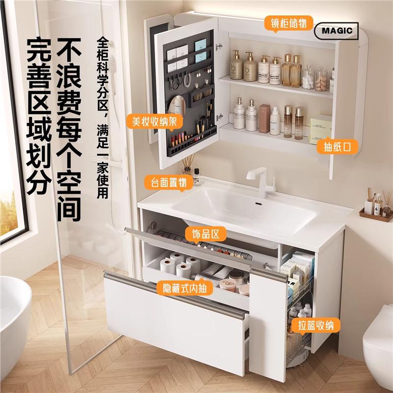 莫顿新款日式大收纳浴室柜抽屉拉篮卫生间陶瓷一体洗漱台洗手脸盆
