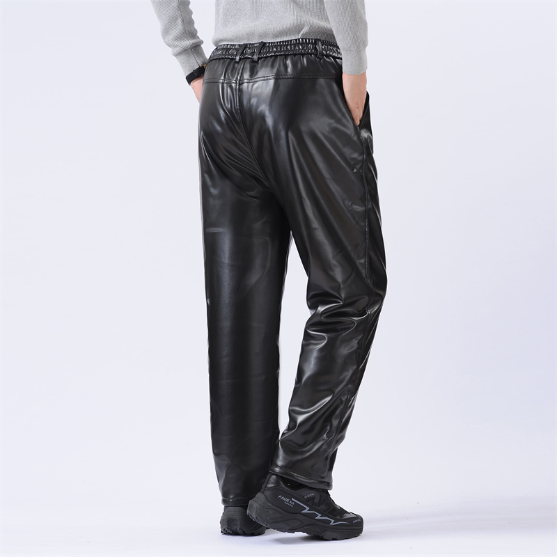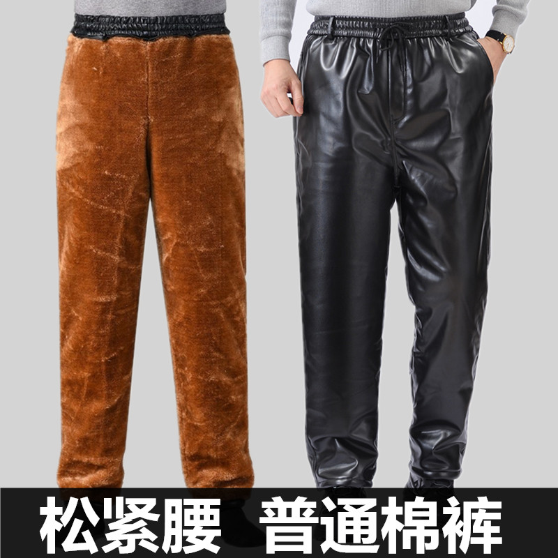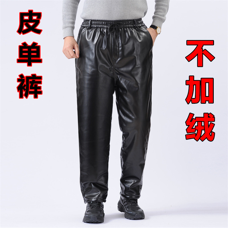 秋冬季皮裤男防风防水中老年皮裤松紧腰男士外卖骑手宽松直筒长裤