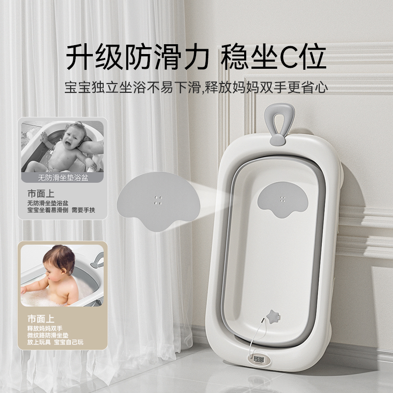 英氏婴儿洗澡盆0-6岁智能感温可折叠宝宝浴盆新生儿坐躺大号浴桶