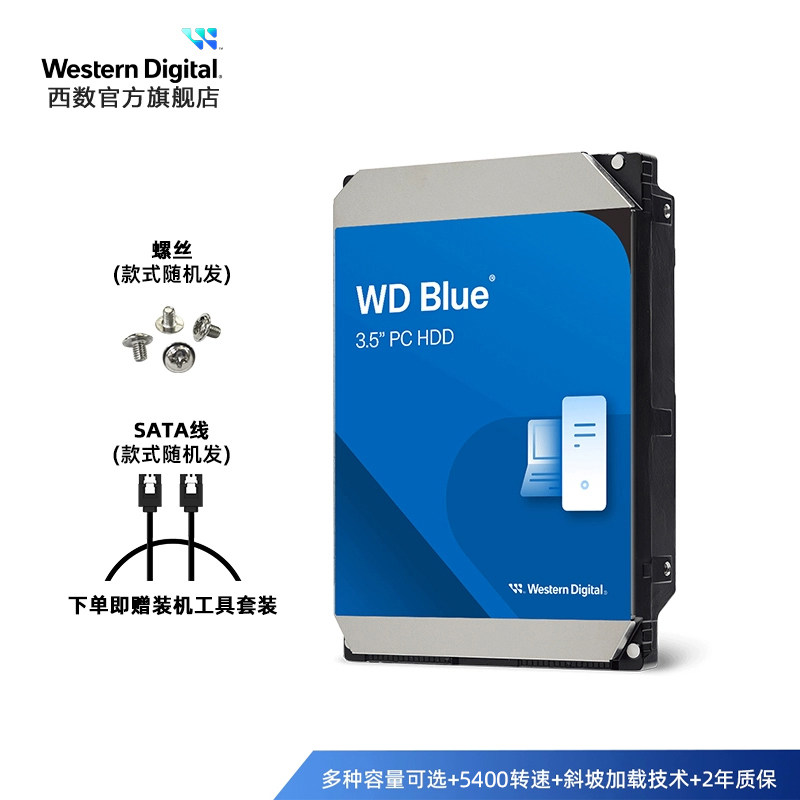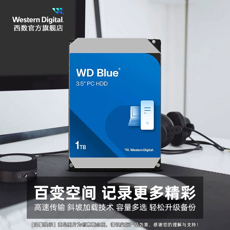 WD西部数据机械硬盘1T西数HDD蓝盘1TB台式机电脑WD10EARZ垂直SATA