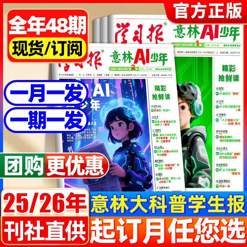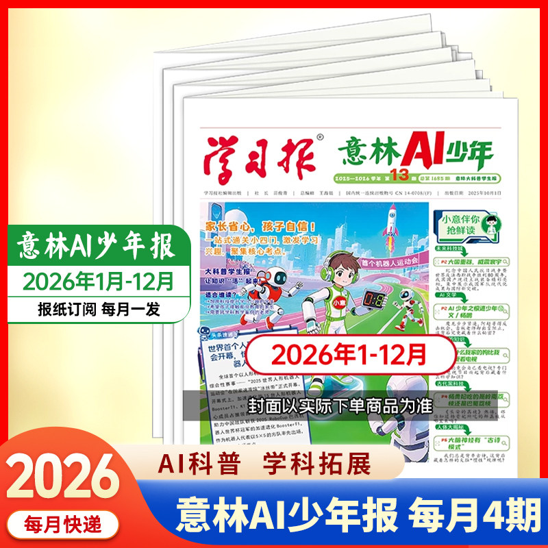 意林AI少年学习报纸杂志含创刊号2026年新刊【2026全年/半年订阅】7-15岁中小学生语文数学物理化学生物阳光少年报2026科普过刊