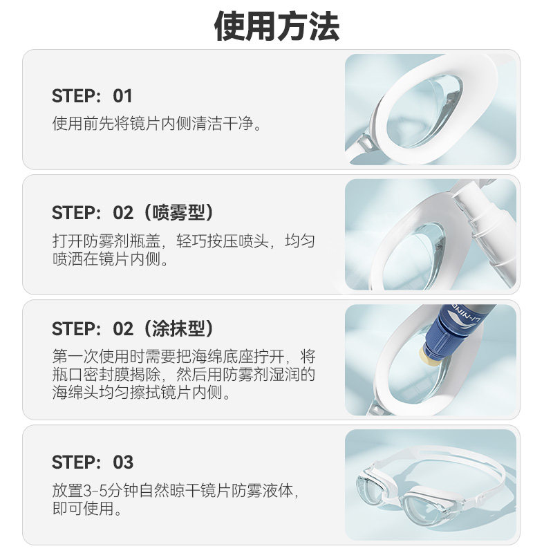 李宁泳镜防雾剂涂抹游泳眼镜片防水高清剂防起雾神器冬天喷雾专业