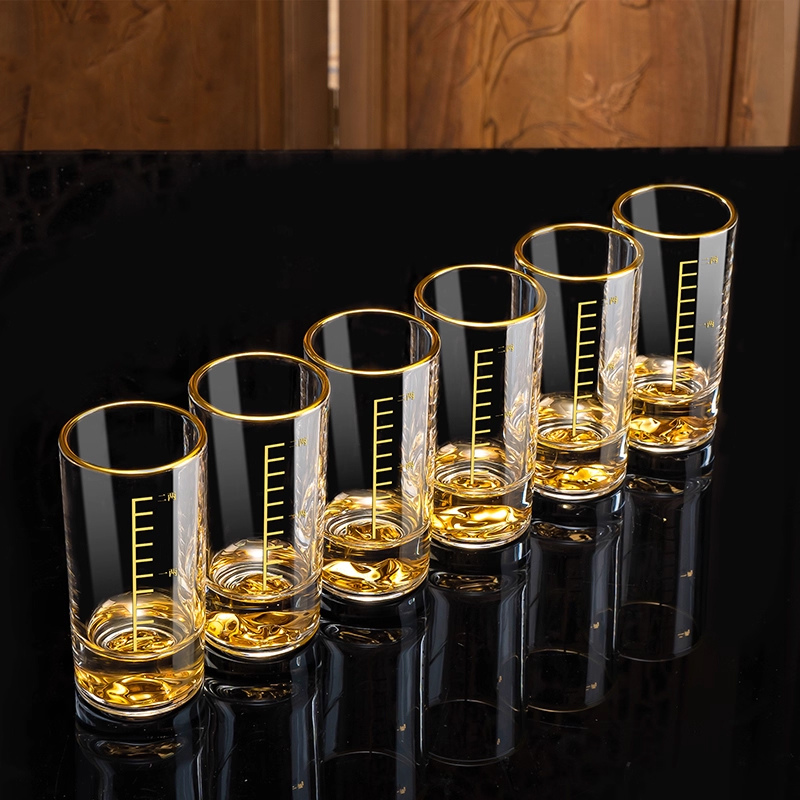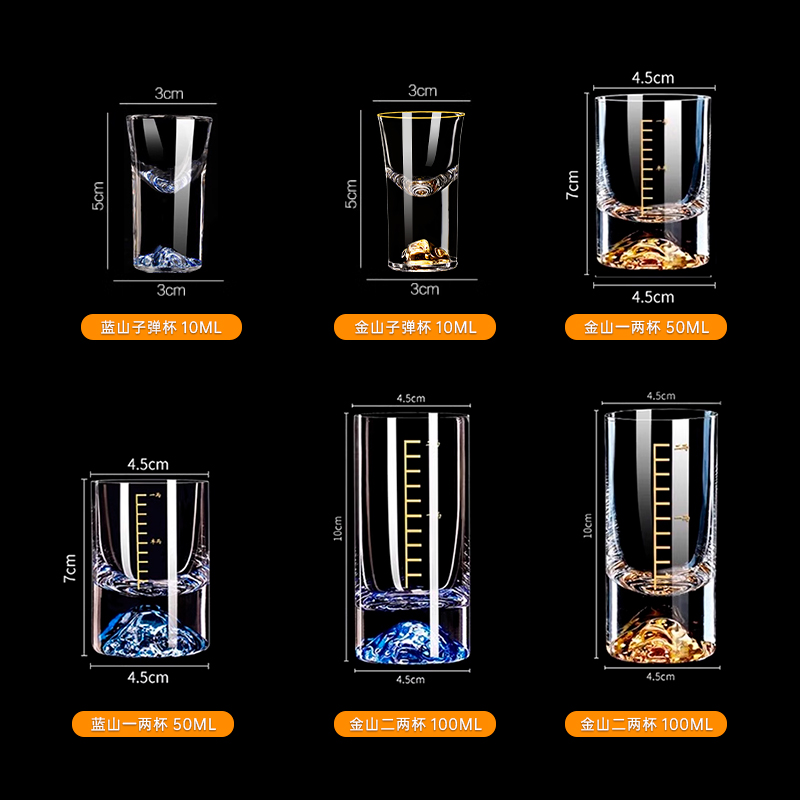 创意蓝山金山白酒杯套装轻奢高档家用二两杯子带刻度一两小酒杯