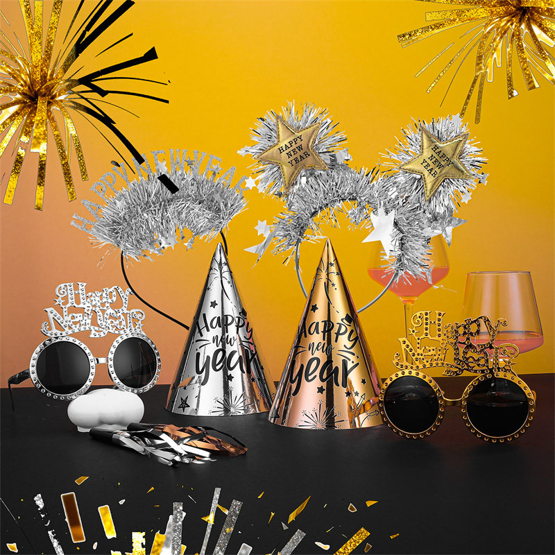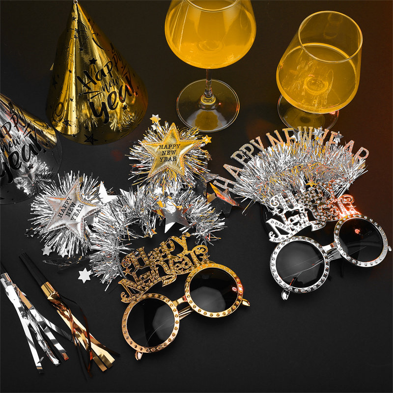 元旦新年派对装饰发箍眼镜跨年公司年会聚会拍照帽子吹龙道具套装