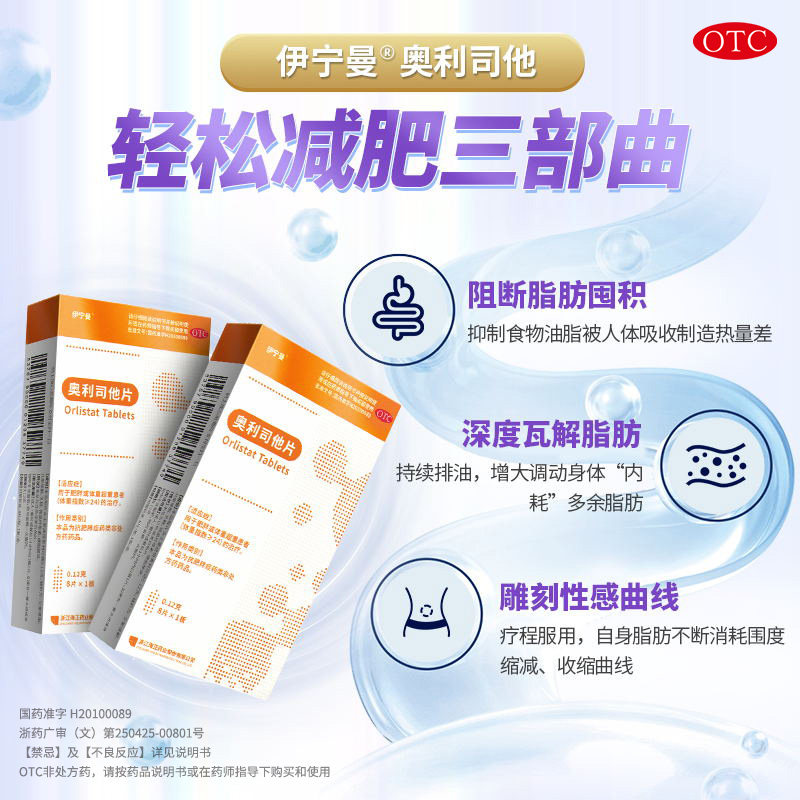 正品伊宁曼奥利司他非胶囊减肥排油燃脂瘦身药瘦肚子神器OTC药品