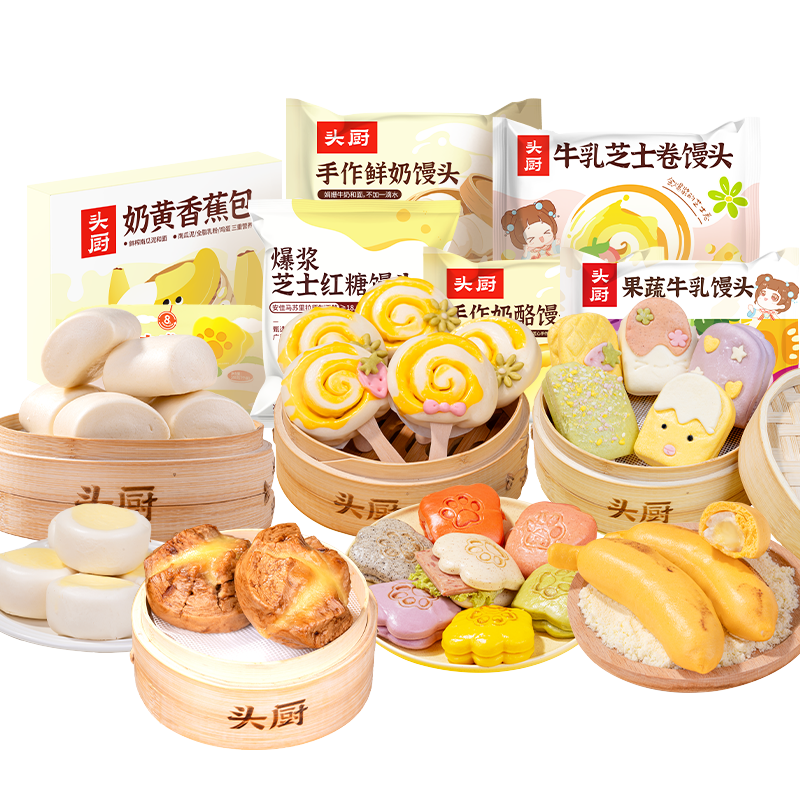 【69元选3件】头厨果蔬鲜奶红糖馒头芝士卷小夹馍香蕉包儿童早餐