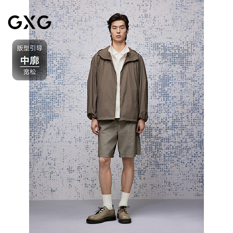 GXG男装 棕色暗纹肌理防晒服透气时尚通勤夹克外套25夏新品