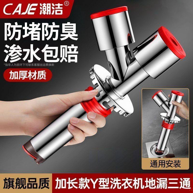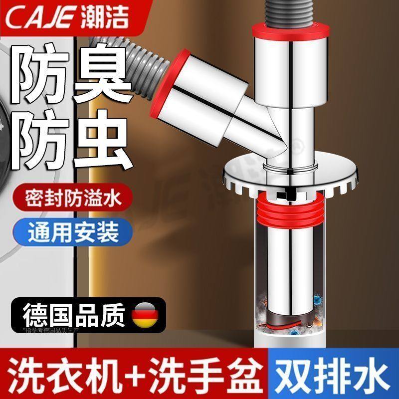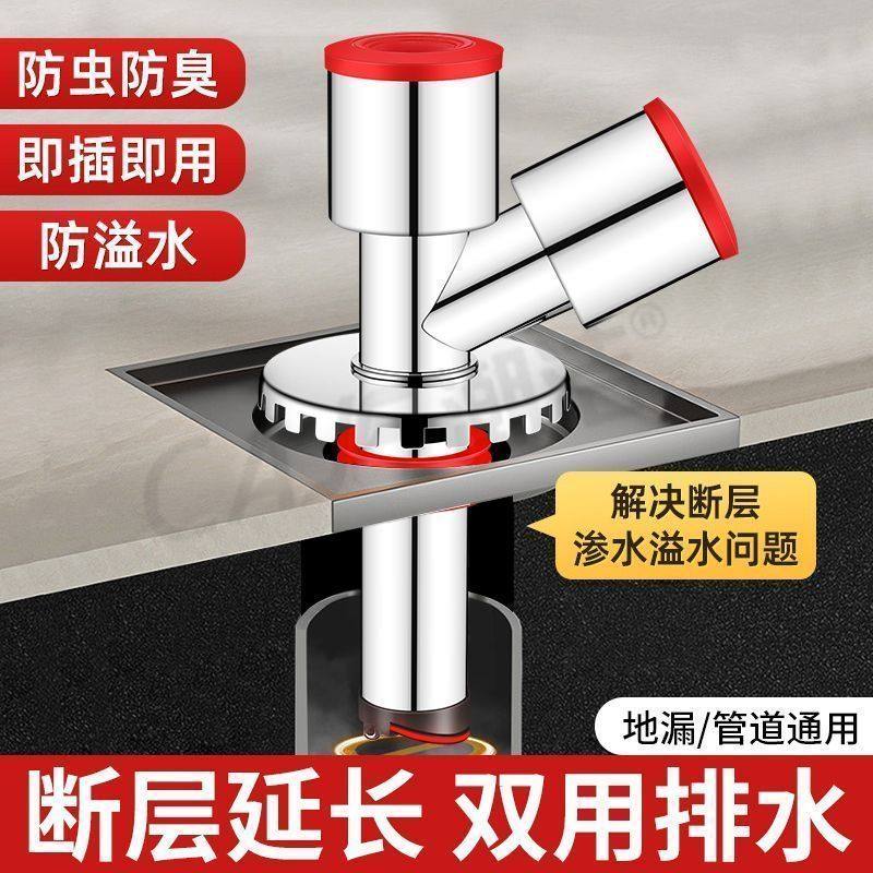潮洁德国不锈钢地漏断层延长管三通接头洗衣机地漏防臭防溢水神器