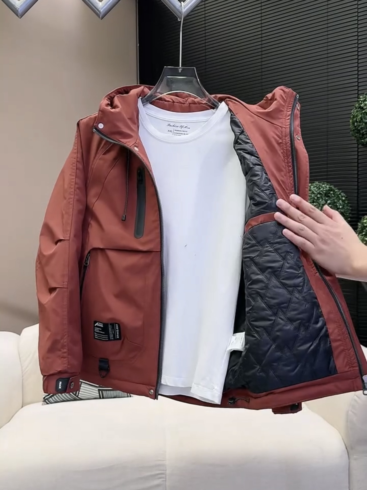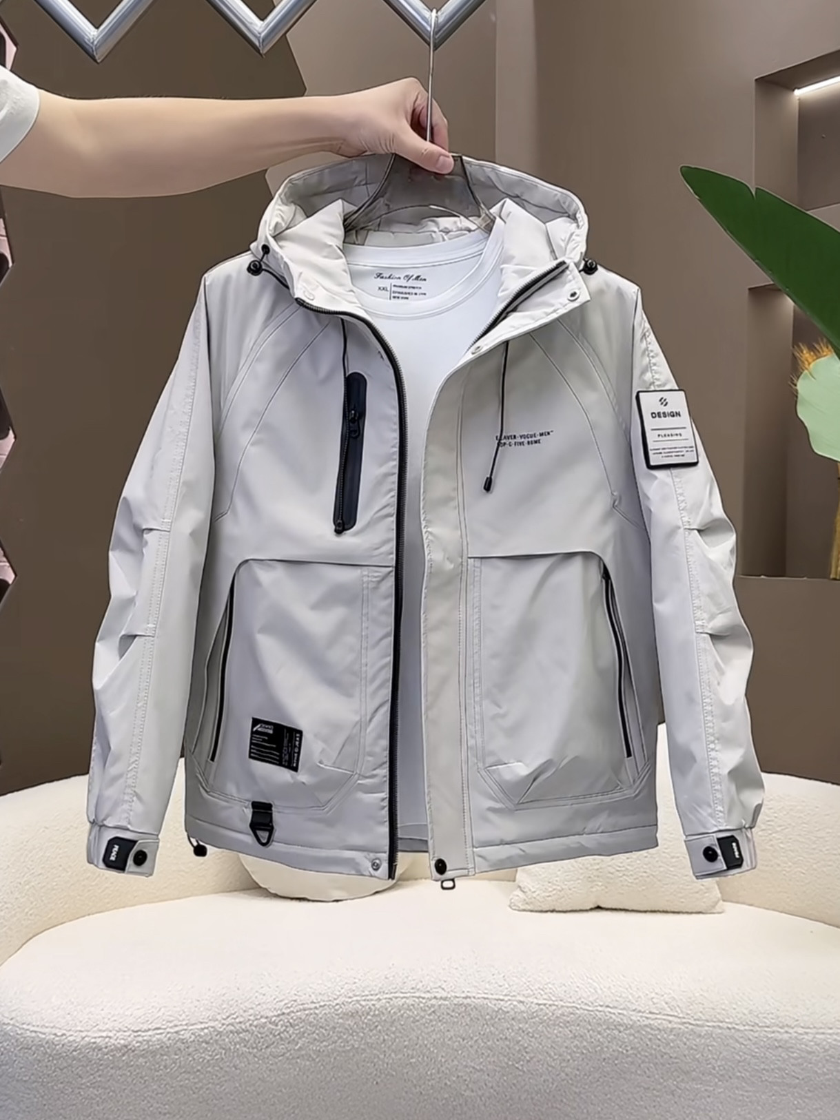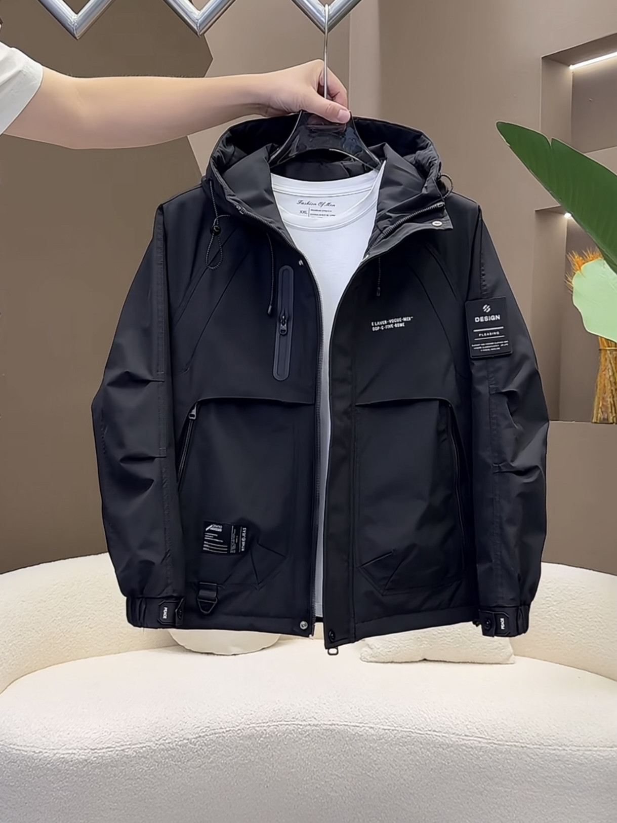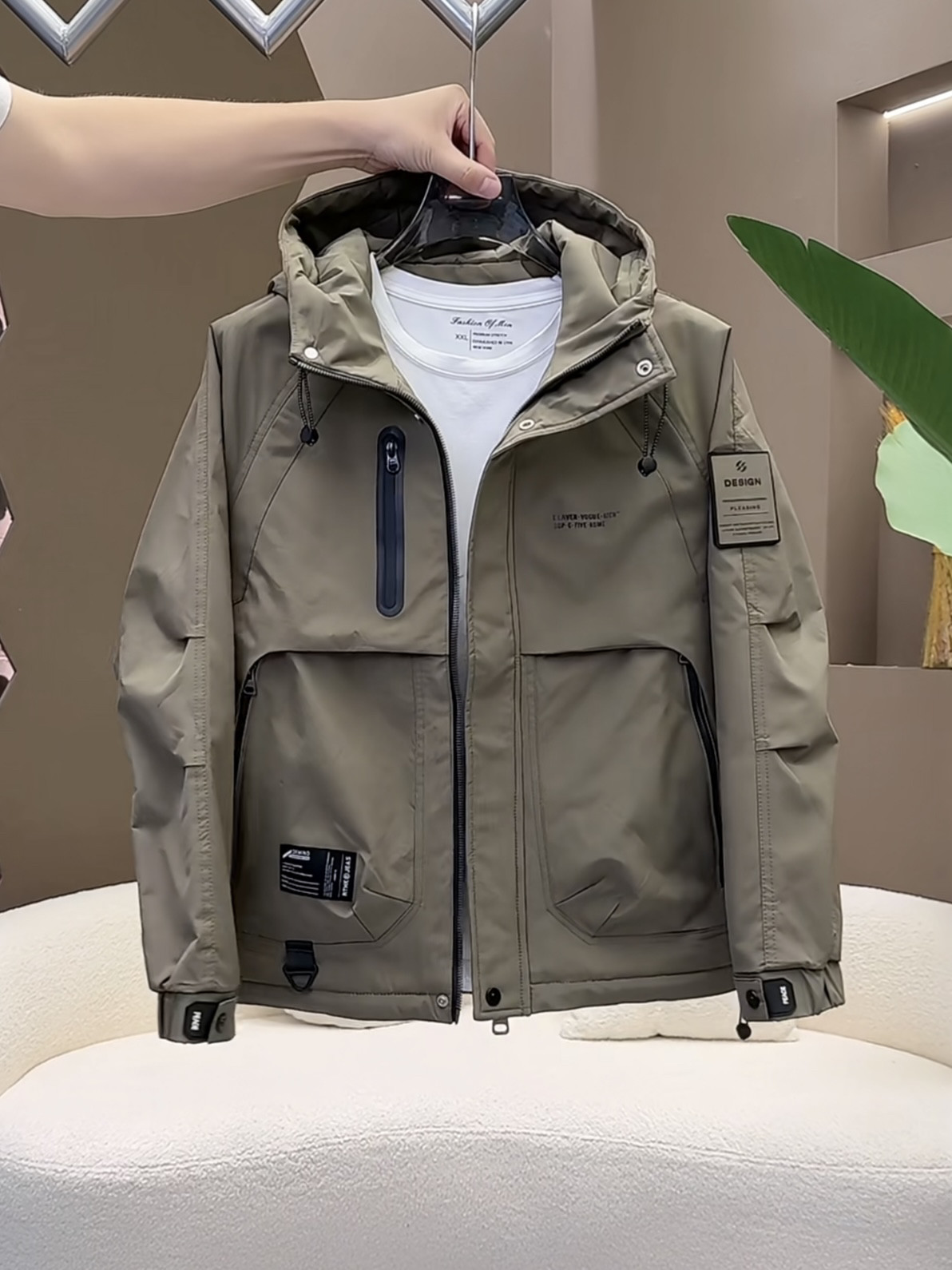 2025秋冬新款男士美式百搭连帽保暖休闲大口袋冲锋衣外套工装夹克