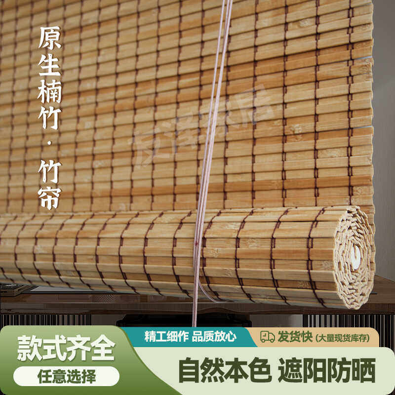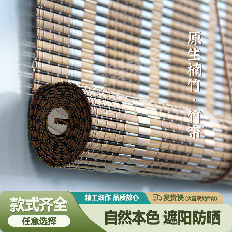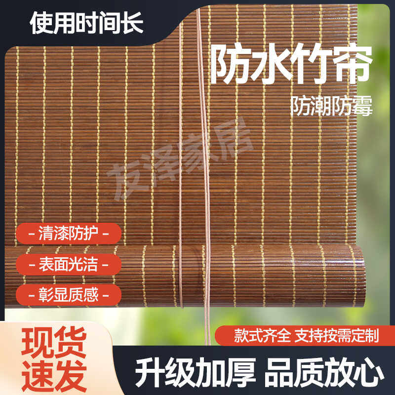 定制竹帘卷帘遮阳茶室窗帘中国风户外凉亭竹卷帘阳台竹帘隔断帘子