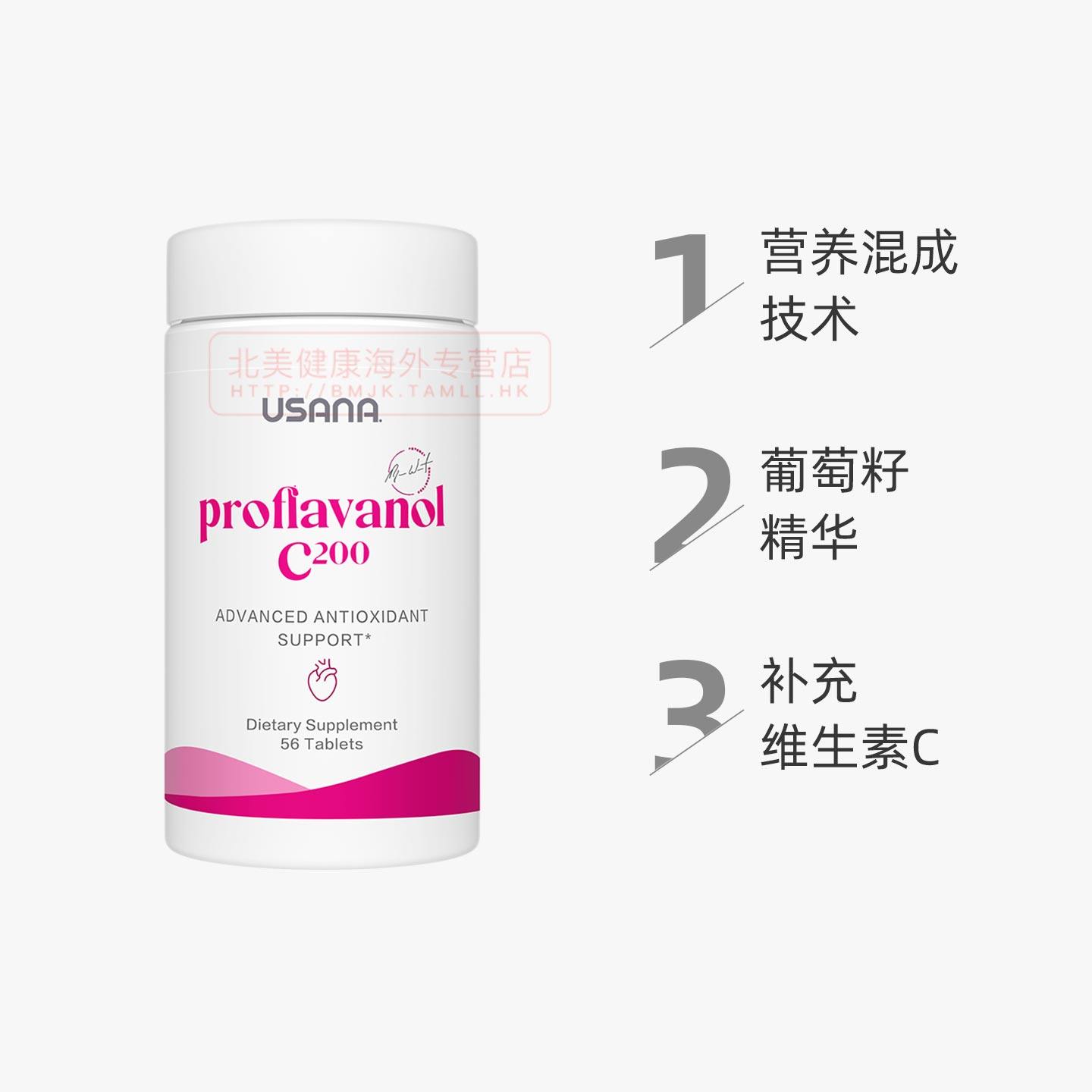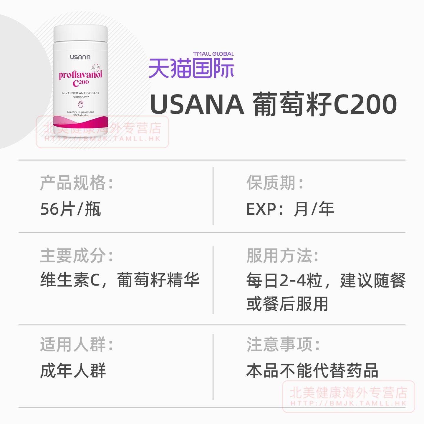 美国USANA优莎娜葡萄籽精华OPC加强版C200原花青素葡萄籽粉正品