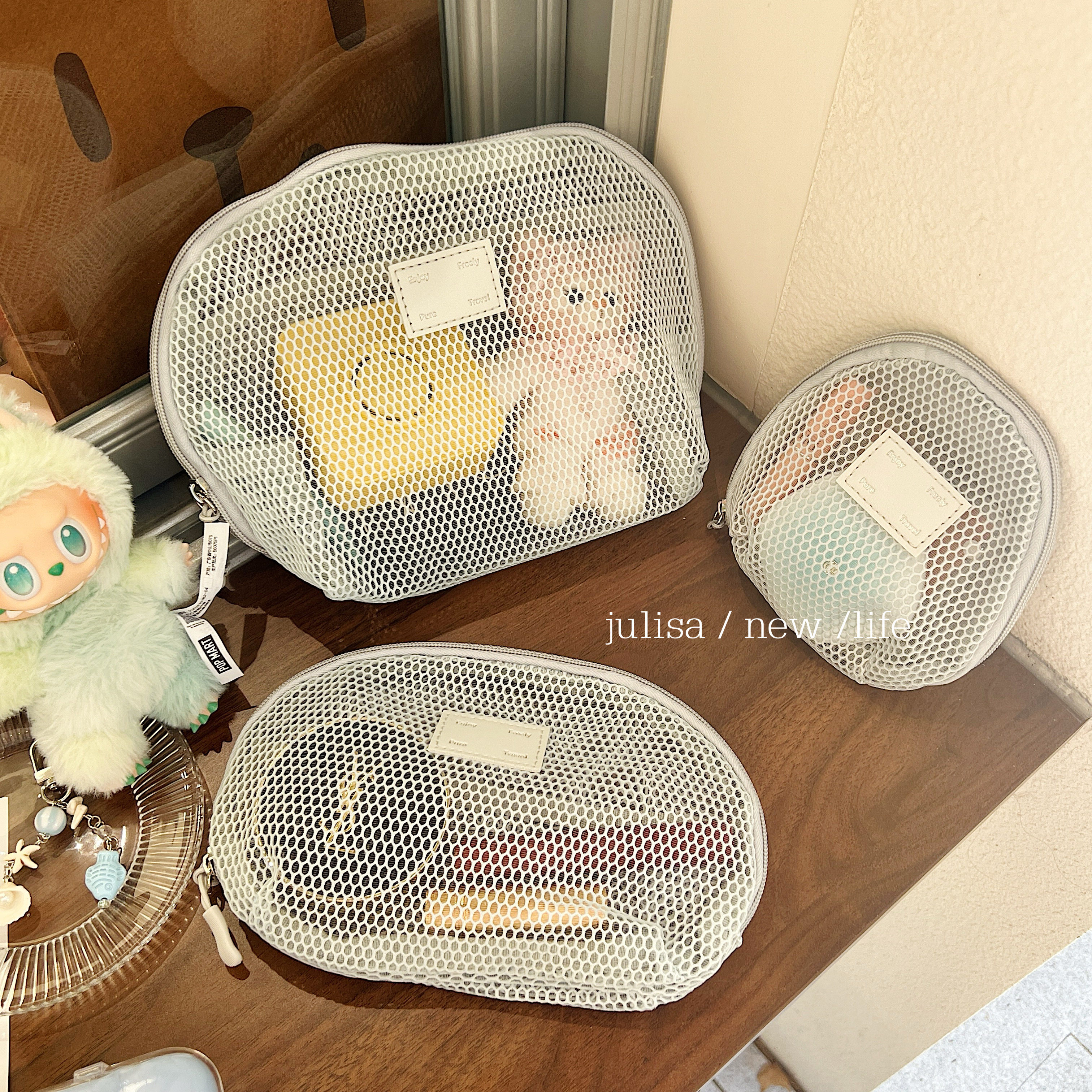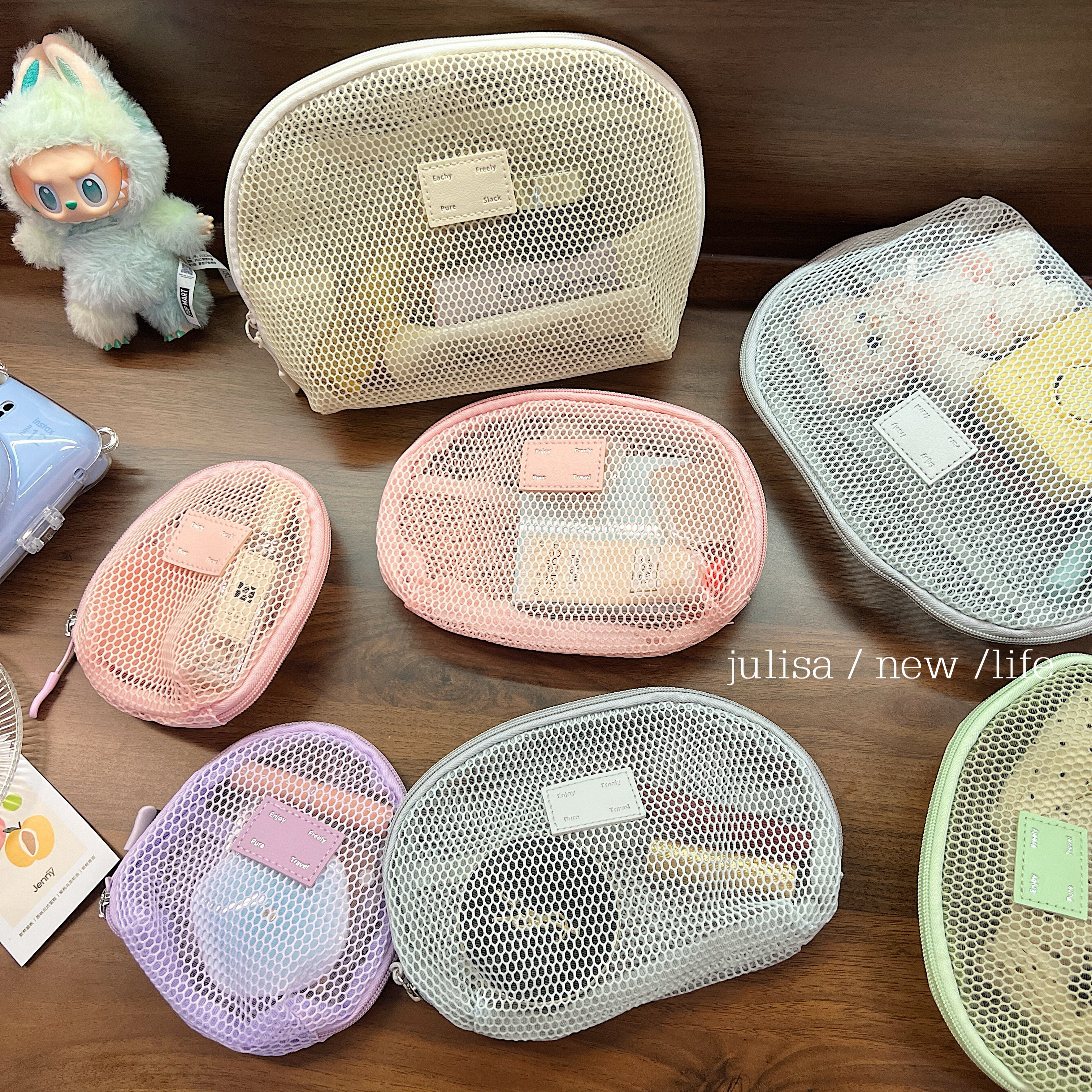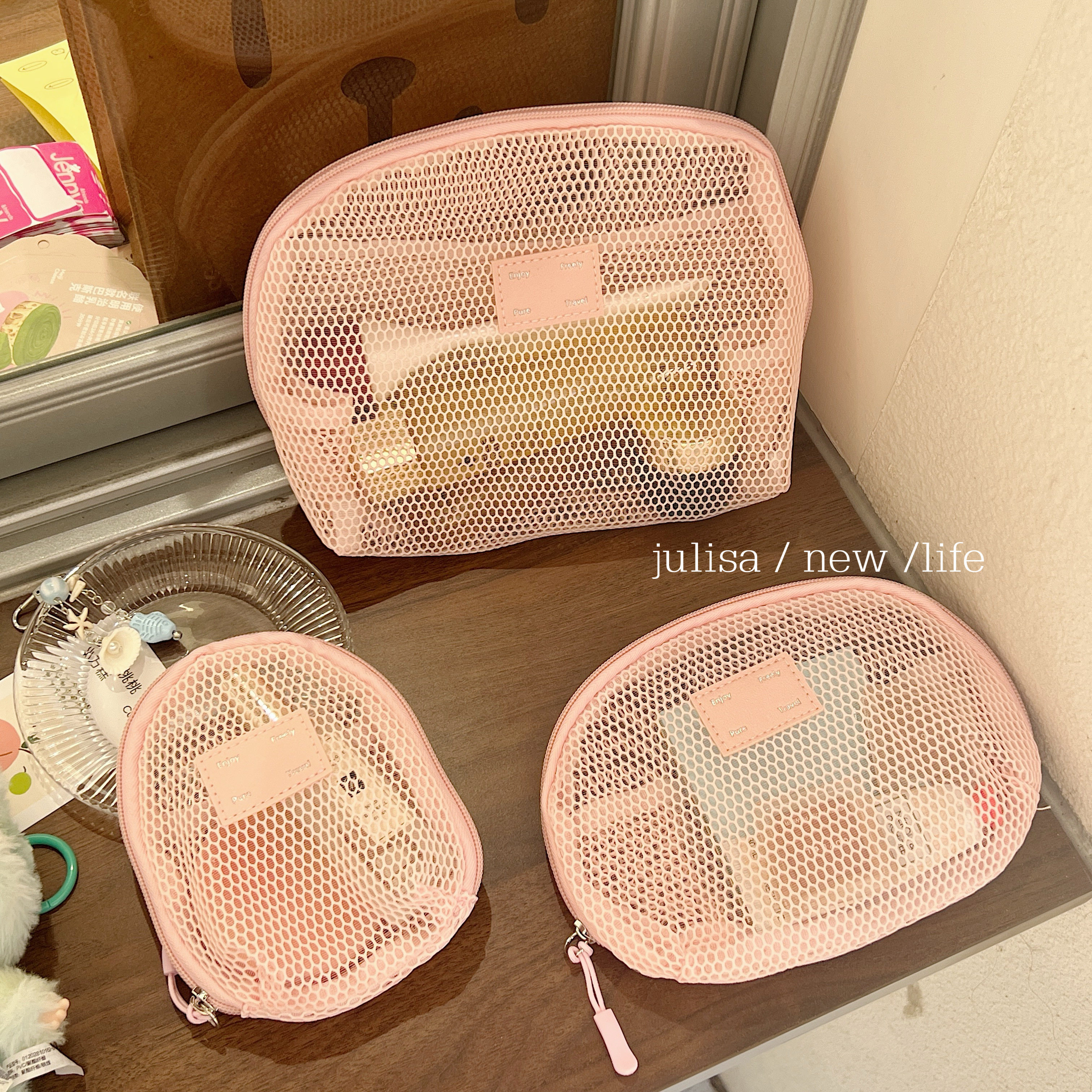 五款色系~实用王者大容量便携洗漱袋网纱化妆包三件套收纳整理包