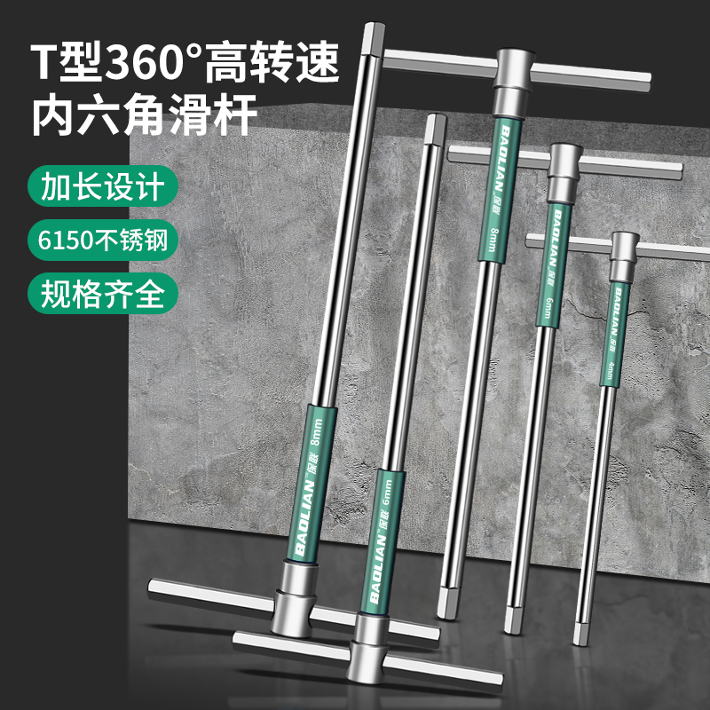 T型高速旋转内六角滑杆扳手工具加长内六角内6方2mm工业级汽修