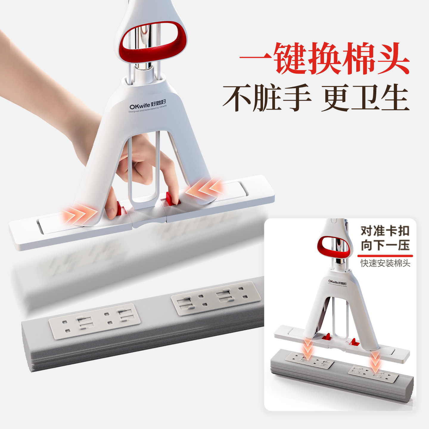 好媳妇对折胶棉拖把家用懒人拖地免手洗海绵头吸水2025新款一拖净