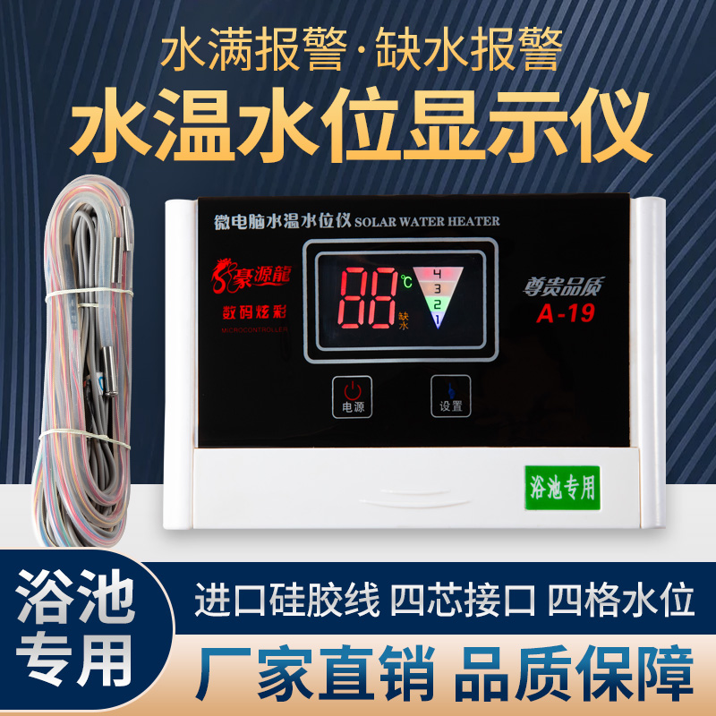浴池锅炉水箱水塔专用水温水位显示仪计器硅胶线测温液位仪控制器