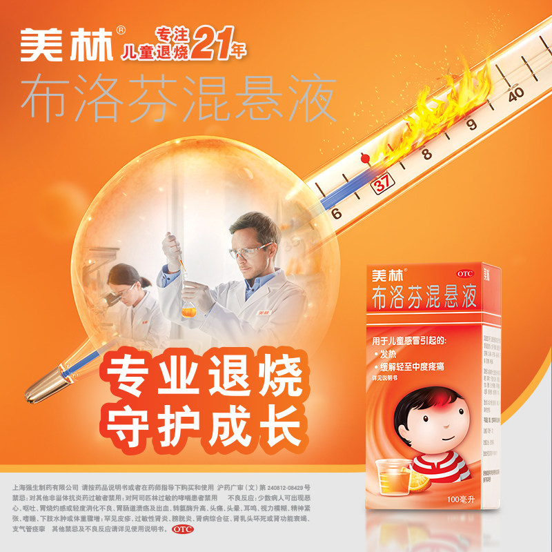 美林布洛芬混悬液100ml儿童退烧药小儿感冒药应急发烧感冒颗粒
