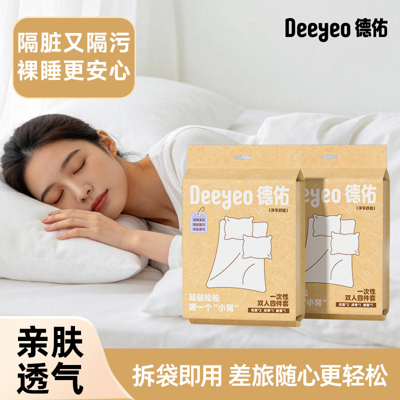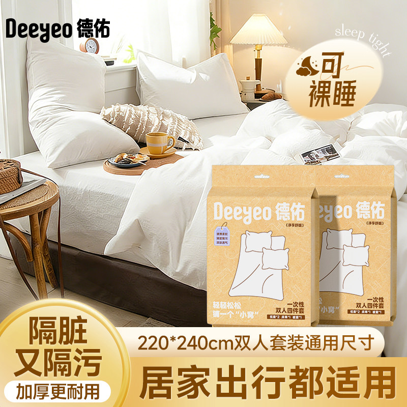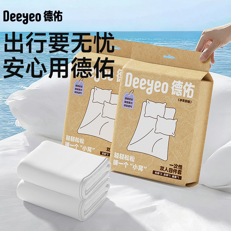 德佑一次性浴巾便携床上四件套床单被罩枕套被套旅行双人加厚床品