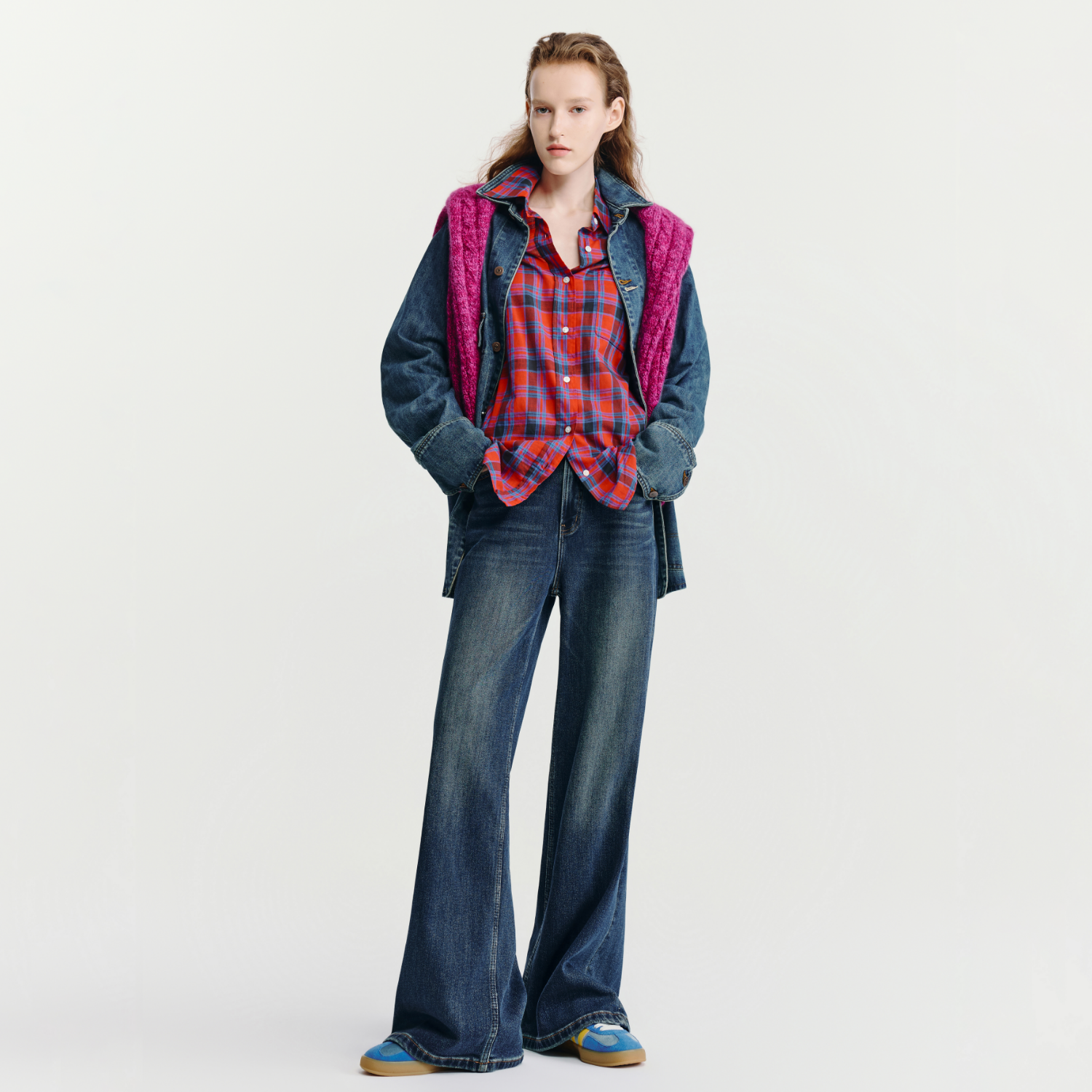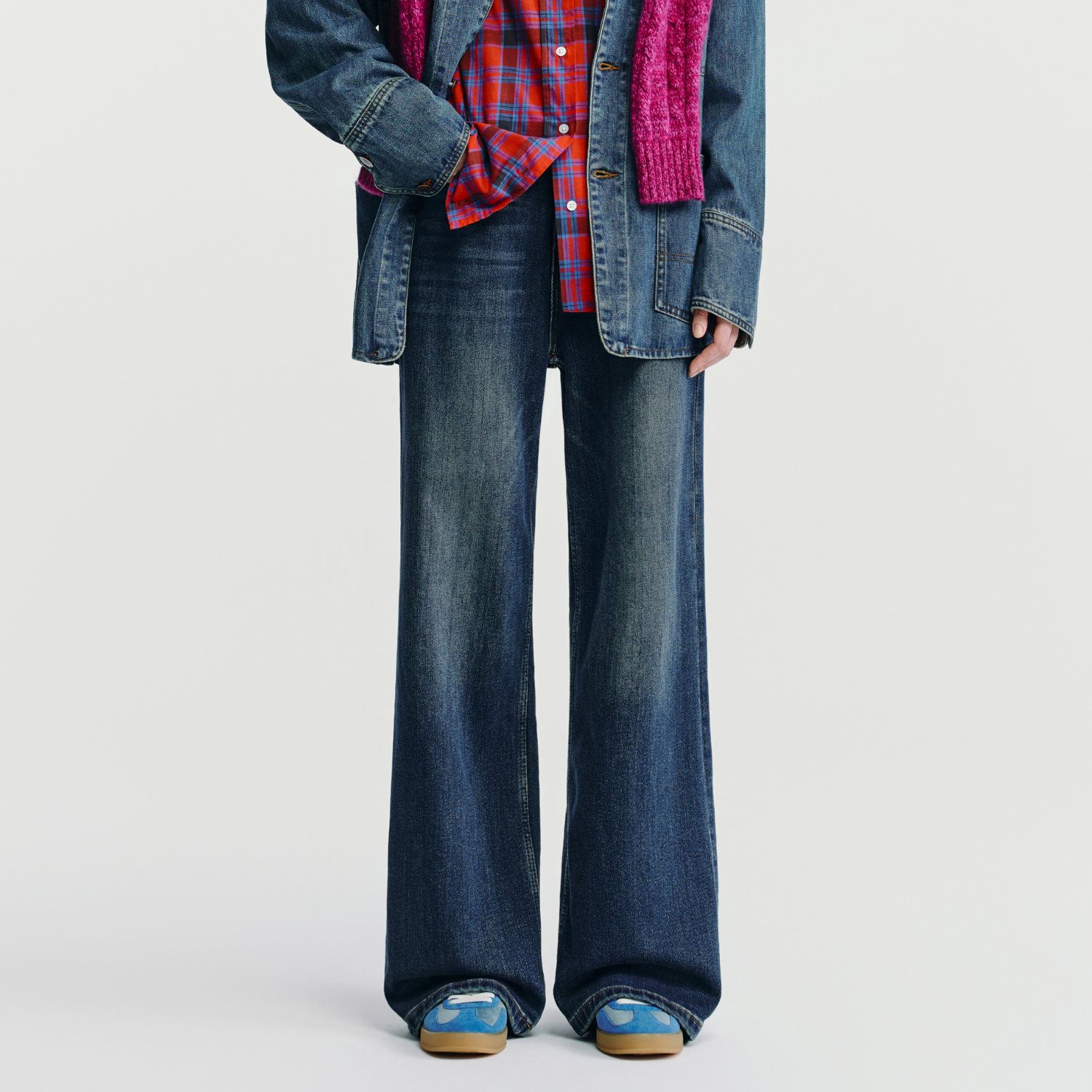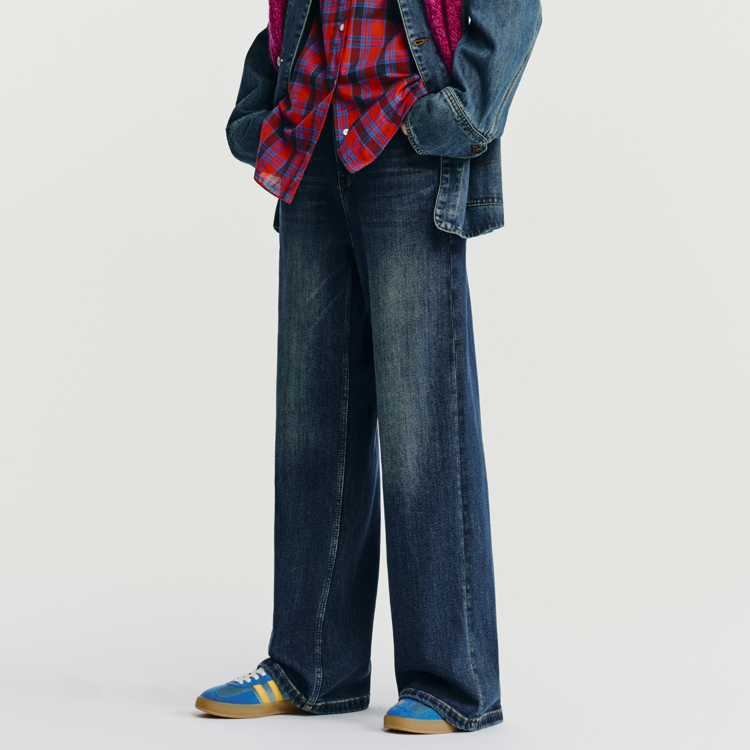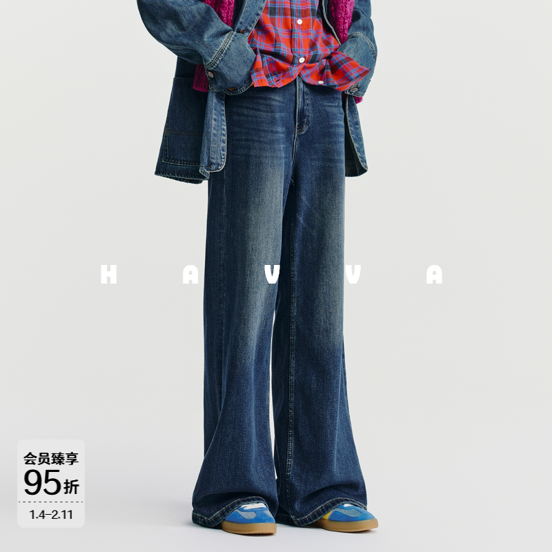 HAVVA水洗猫须加绒加厚宽松阔腿裤女士牛仔裤2025年冬季KH3-5185
