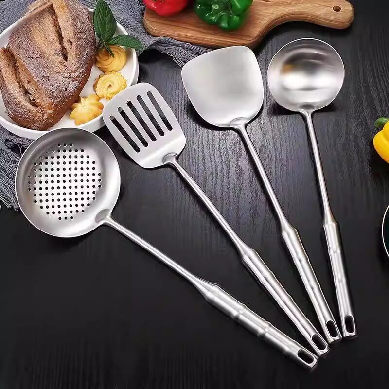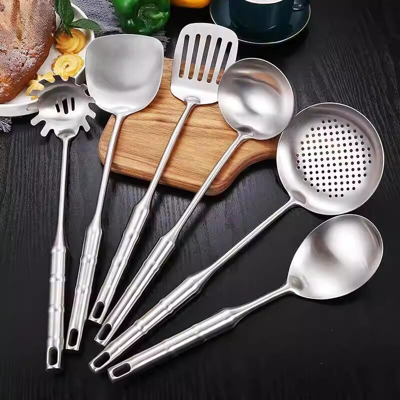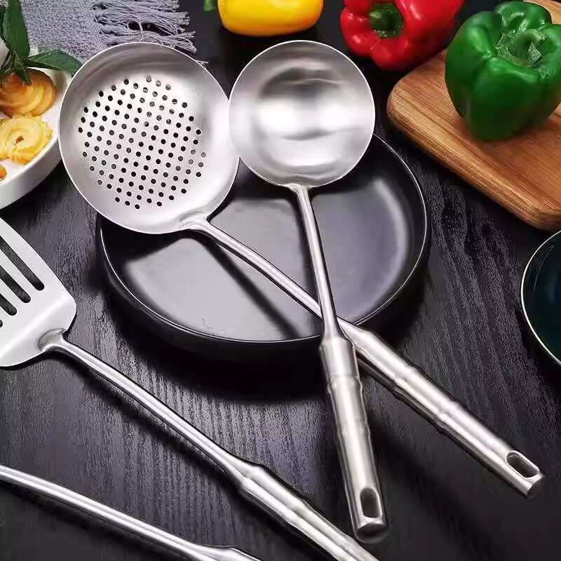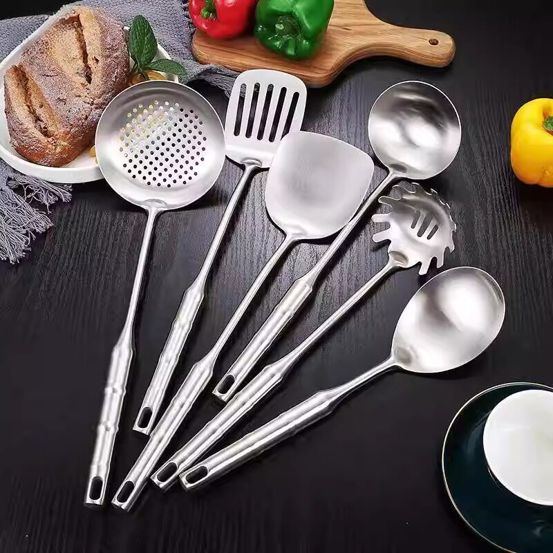 304加厚不锈钢厨具套装空心竹节柄 锅铲勺厨房烹饪用具汤勺饭勺漏