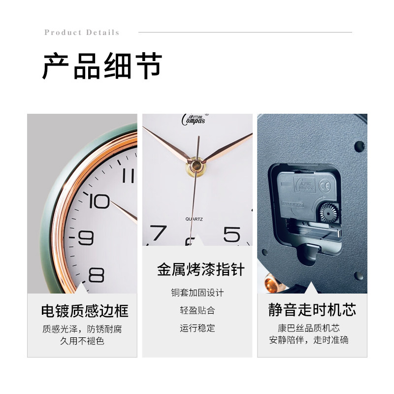 康巴丝静音桌面台钟简约客厅卧室书房时钟座钟儿童石英钟表2879
