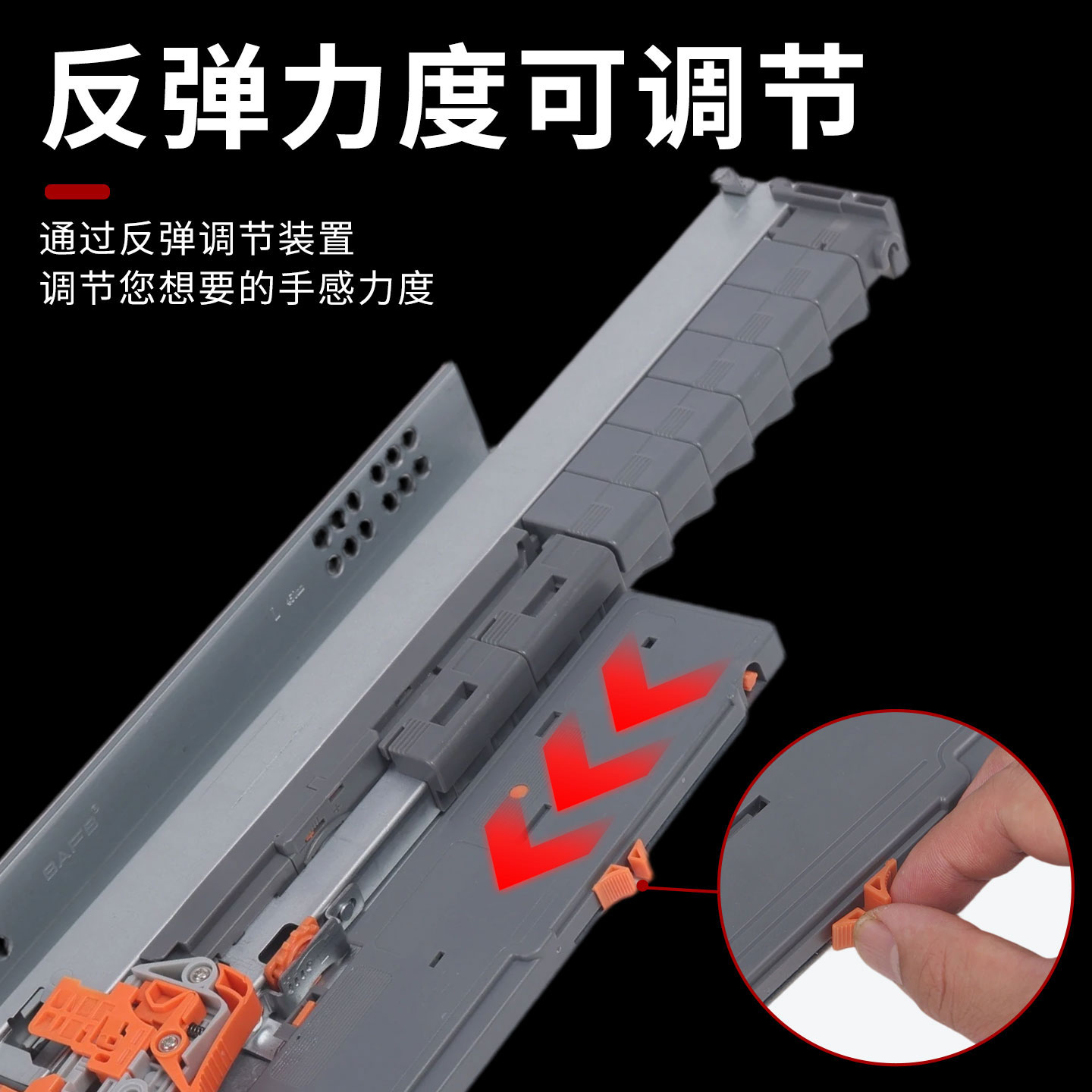 反弹缓冲托底导轨抽屉轨道平衡稳定系统三节按压阻尼同步隐藏滑轨