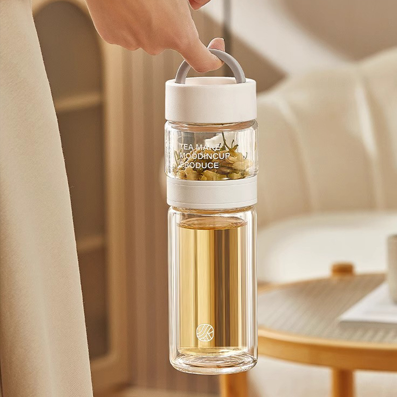 物生物高硼硅玻璃水杯女士夏季便携茶水分离泡茶杯2025新款杯子