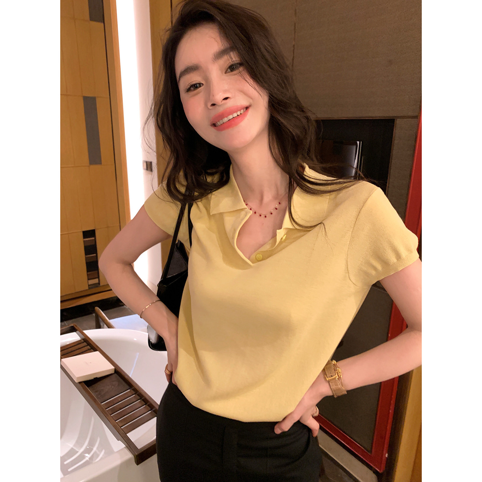 PRISCA 富家女polo衫上衣女高阶短款透气针织短袖T恤2025春夏新品