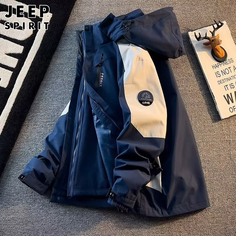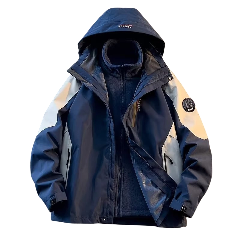 冲锋外套男士冬季户外三合一可拆卸风衣加绒加厚保暖休闲运动夹克