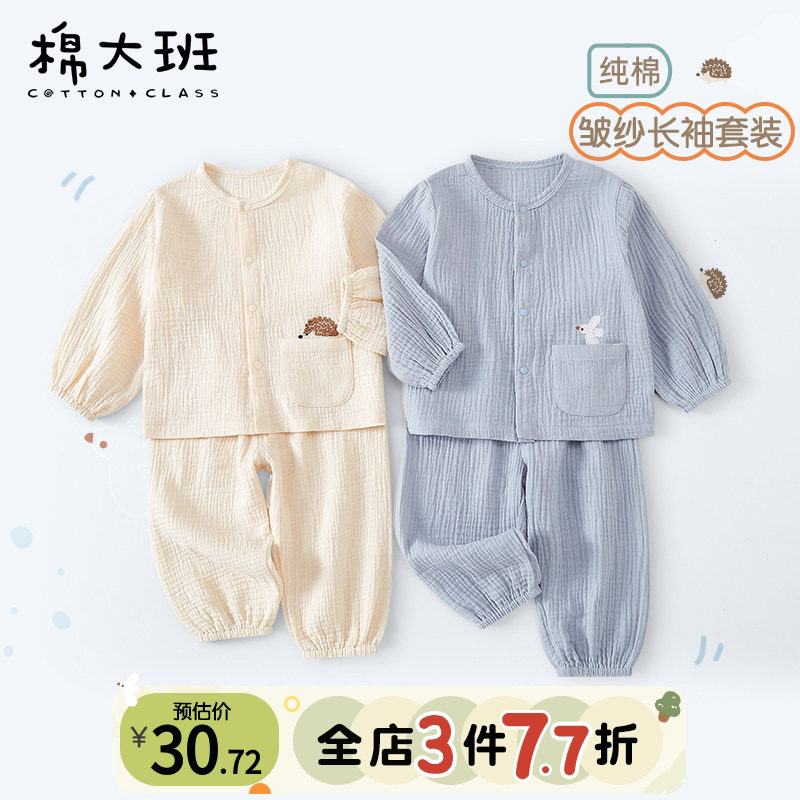 儿童纱布睡衣宝宝家居服春季纯棉a类夏季薄款婴儿空调服长袖分体