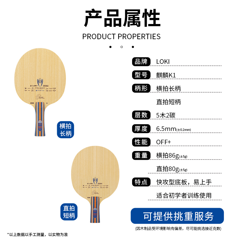 LOKI雷神乒乓球底板DIY5木2碳素T3省队训练套餐弧圈快攻横直拍