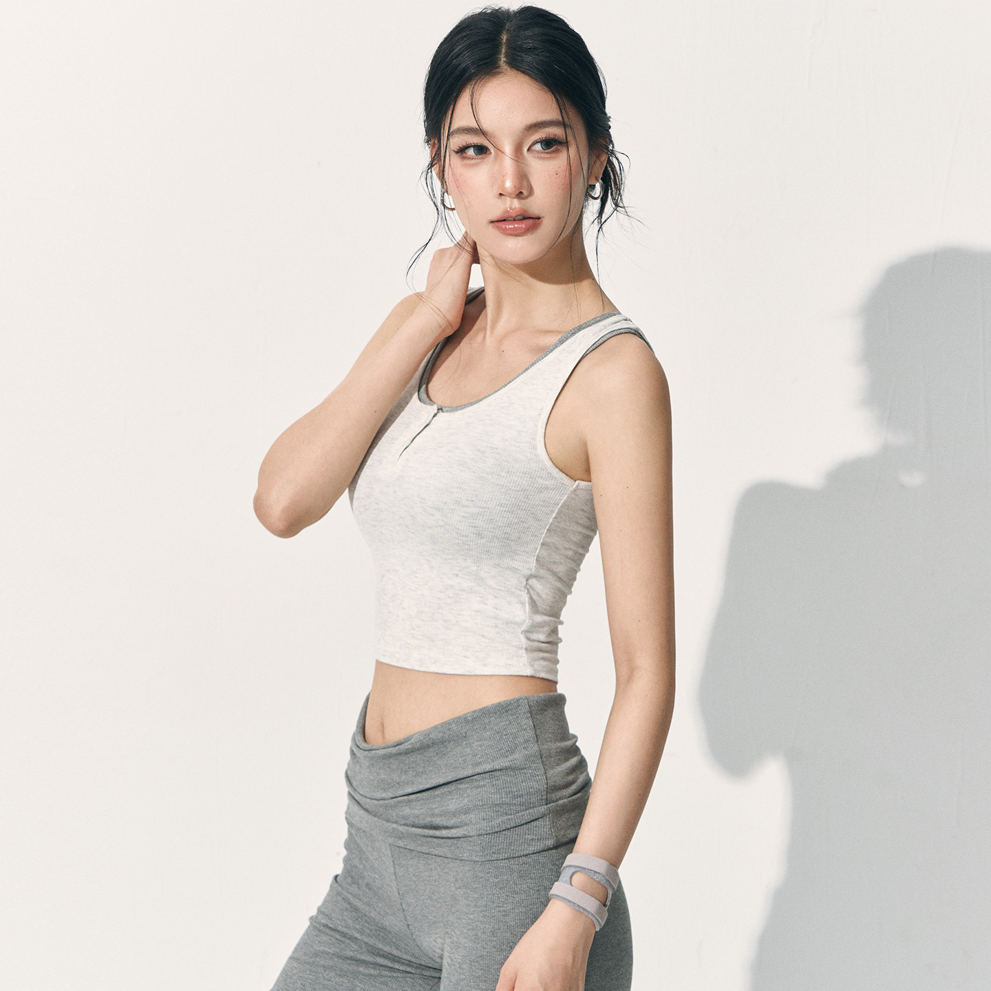 假两件速干运动背心女紧身撞色休闲内搭带胸垫普拉提瑜伽文胸bra