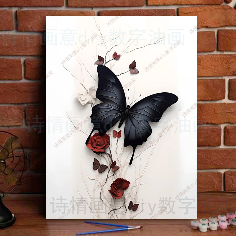 数字油画diy填色蝴蝶立体唯美治愈系解压自己动手填色简约装饰画