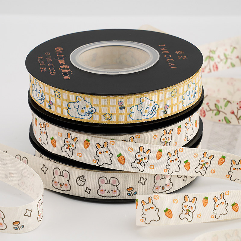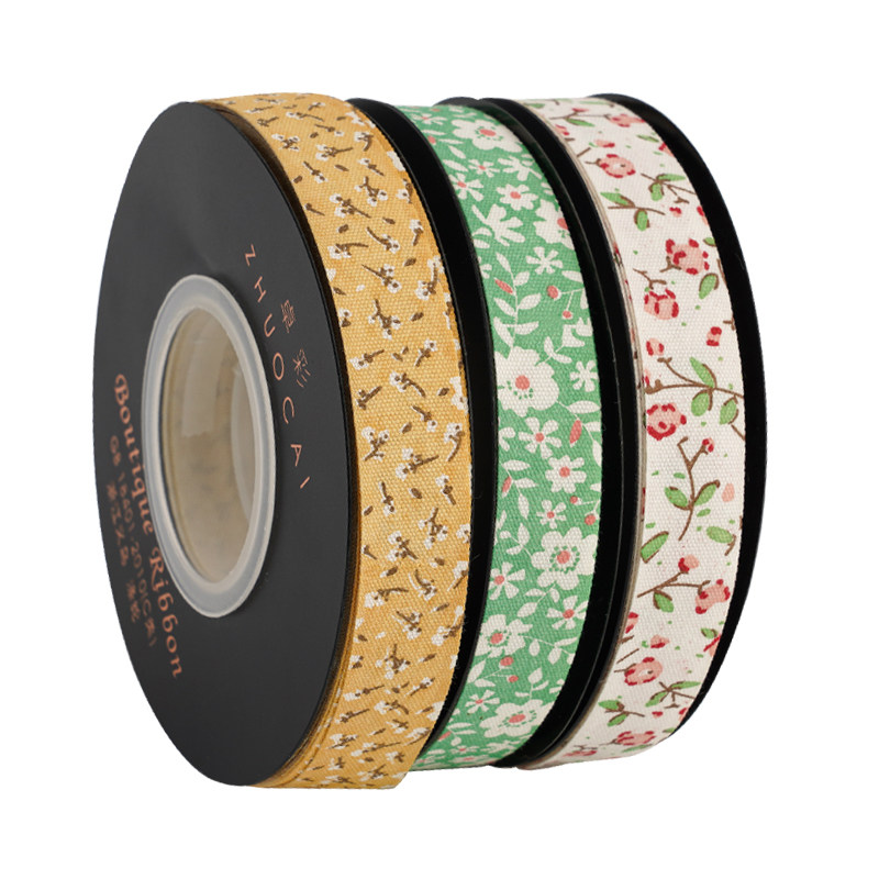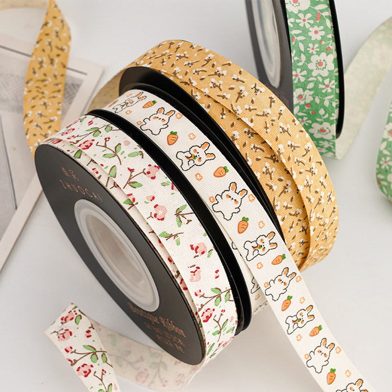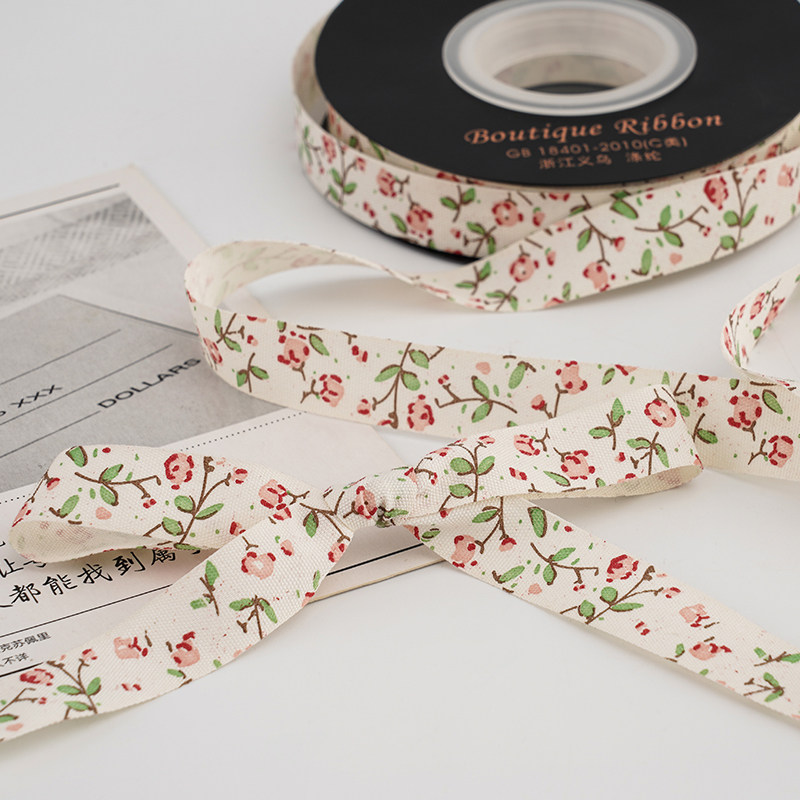 1.5厘米少女甜美风印花丝带蝴蝶结缎带鲜花束包装棉带手工DIY材料