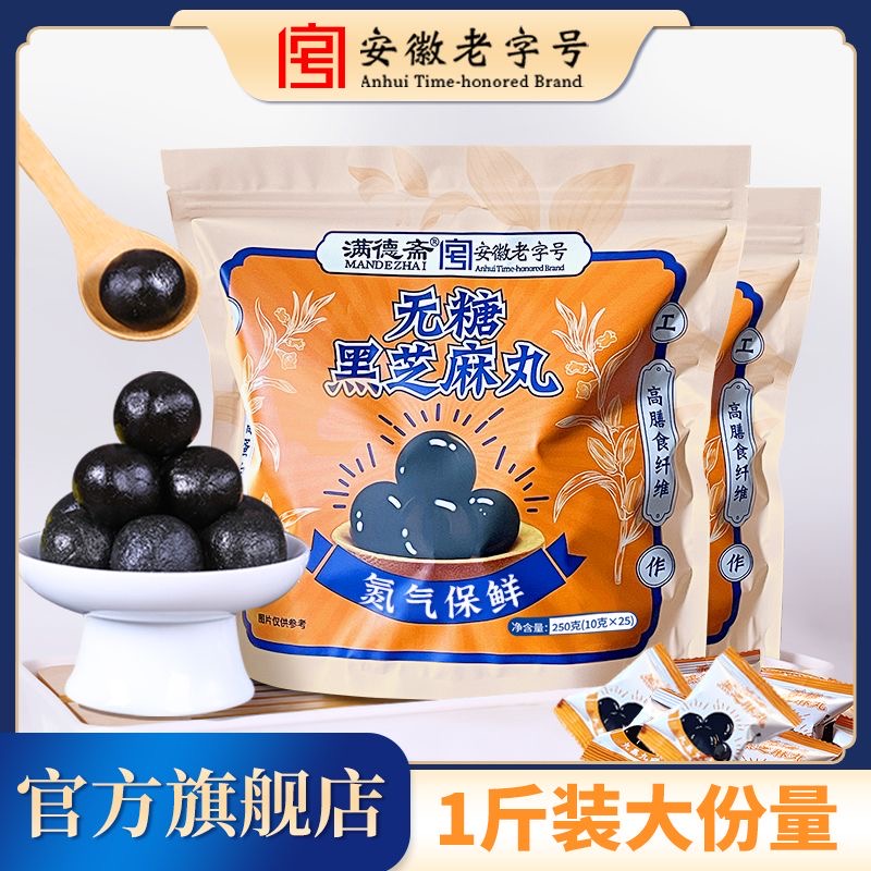 减肥解馋小零食糖友食品安徽老字号无糖黑芝麻丸九蒸九晒传统手工制作营养高钙低卡自律孕妇膳食纤维下午茶滋补养生丸入口香浓