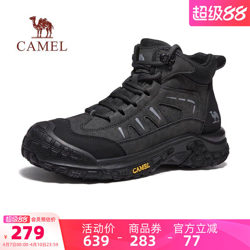 骆驼男鞋高帮鞋2026新款时尚加绒棉鞋防滑户外登山徒步鞋运动鞋男