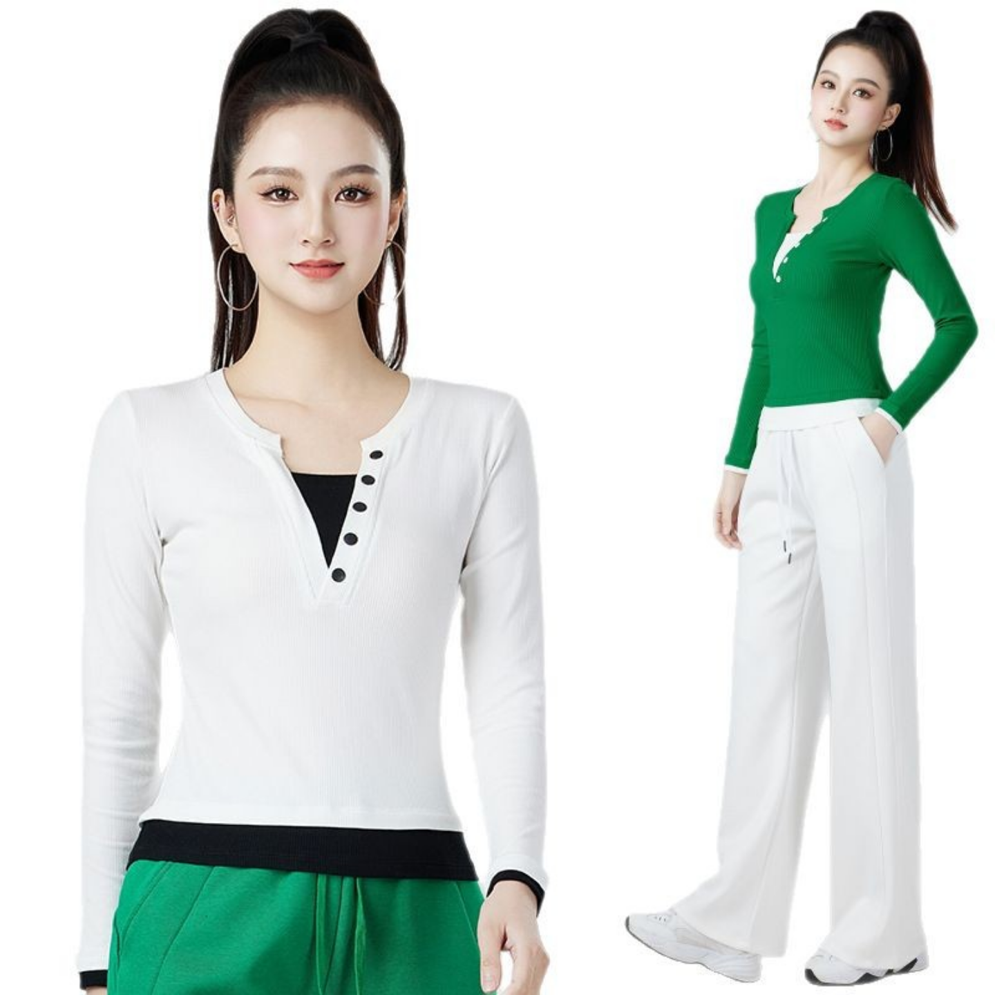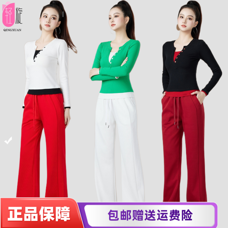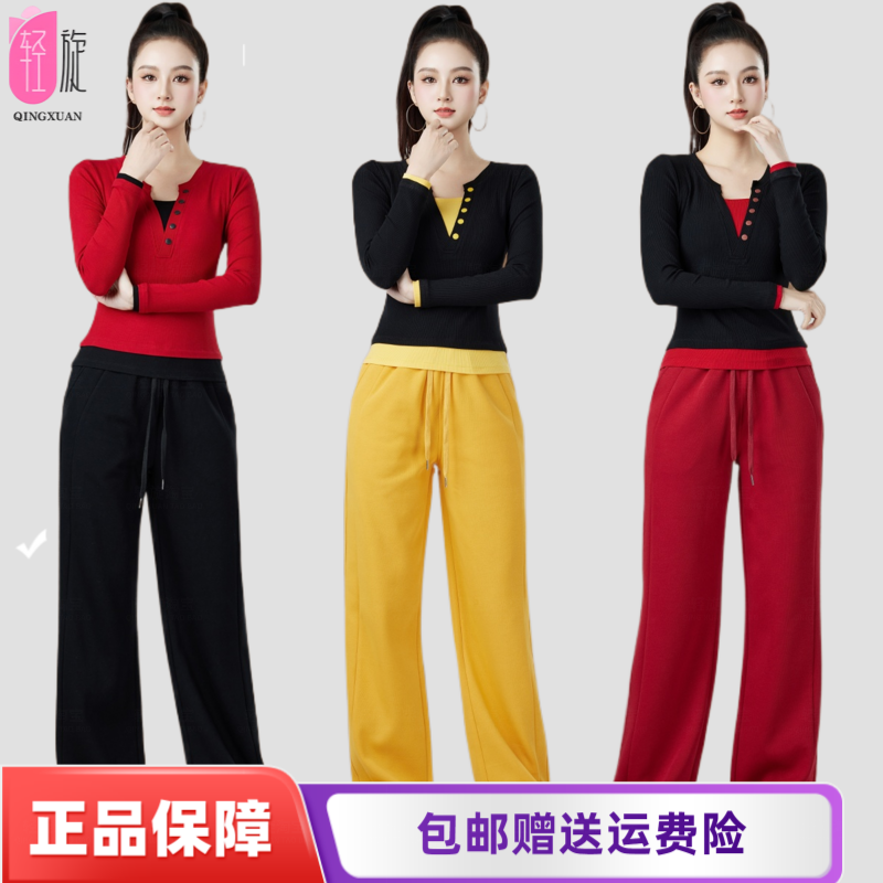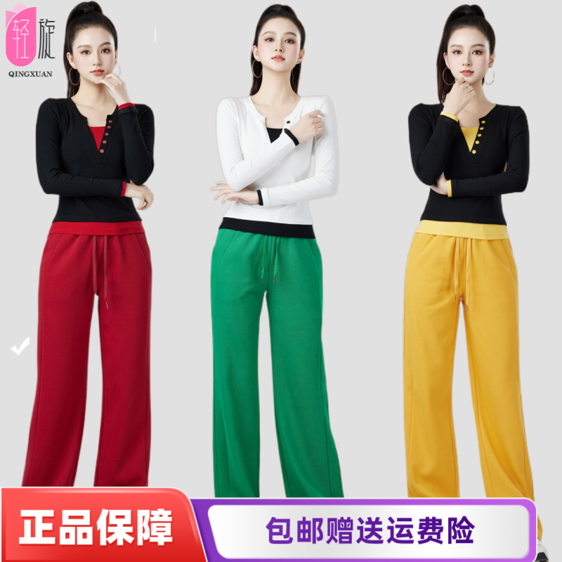 25年春新款广场舞运动假两件V领窄版直筒裤鬼步舞跳操健身套装女