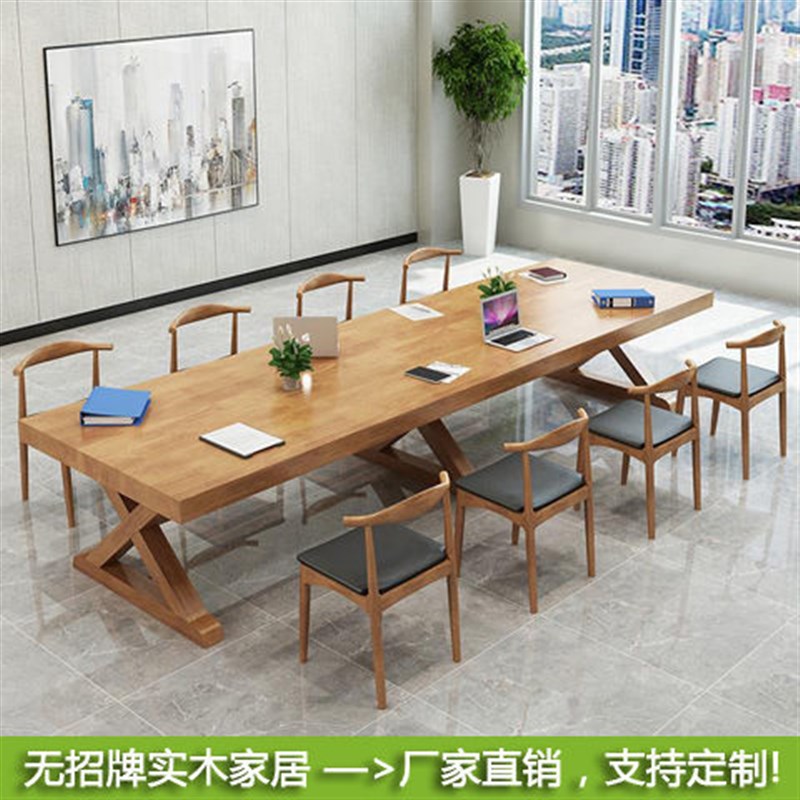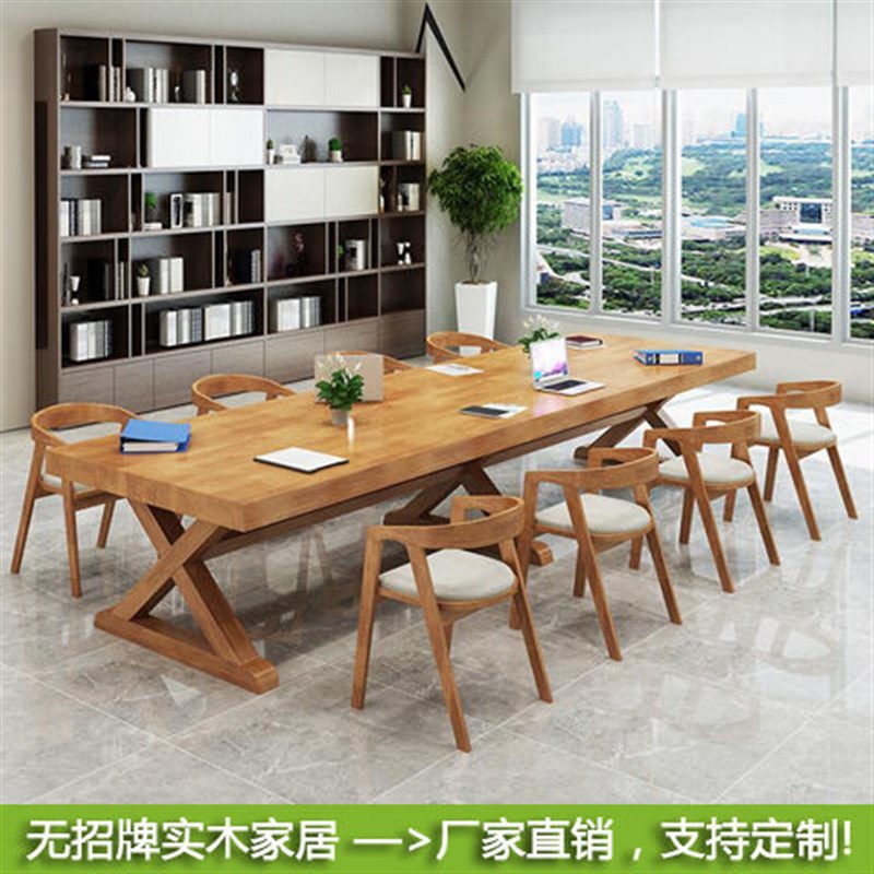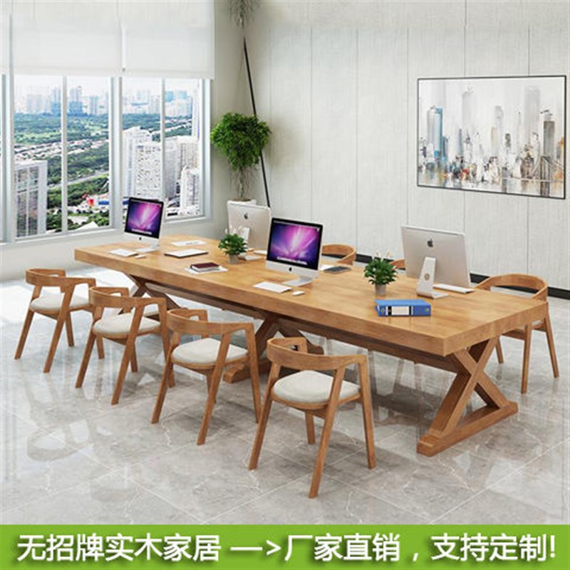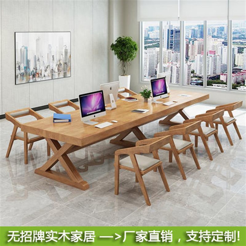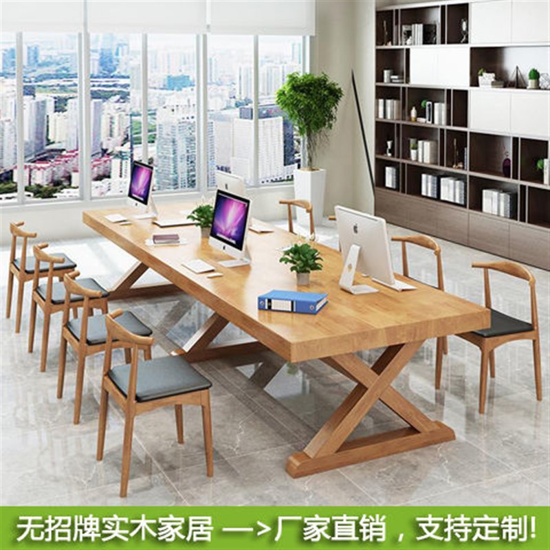 美式实木会议桌办公桌电脑桌商业办公家具洽谈长桌接待室桌椅组合