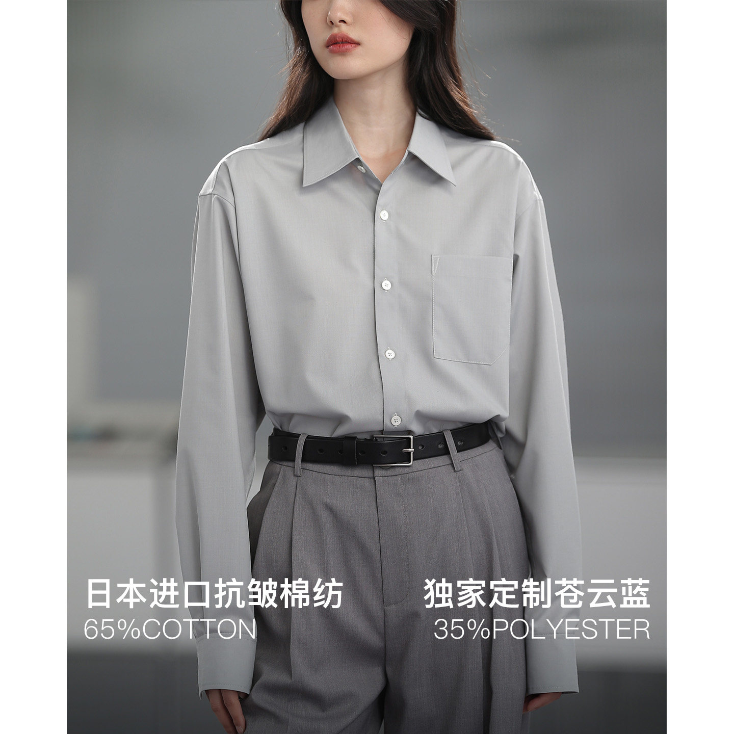 COMMON VALUE「 龛 Niche 」沧云蓝法式长袖宽松衬衣中性气质衬衫